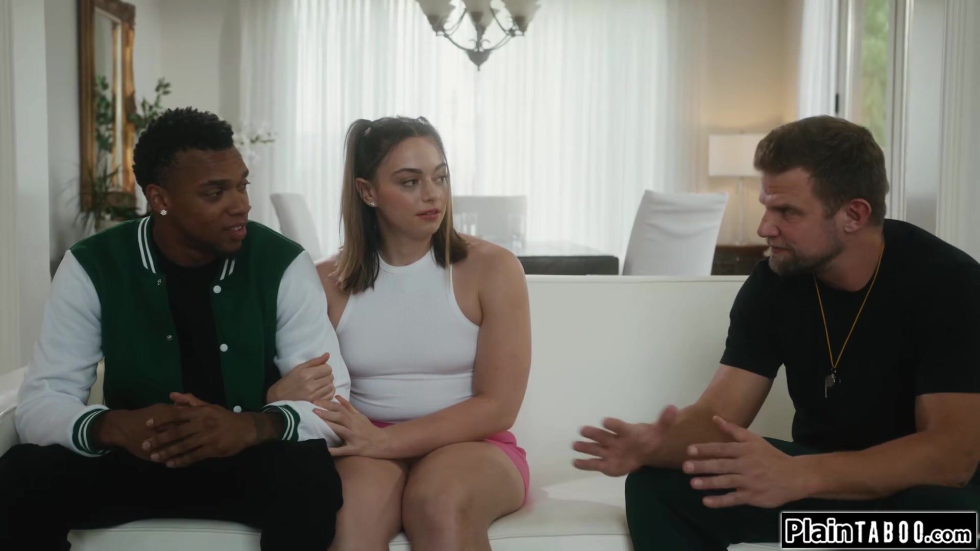 Teen Sophia Burns cheated on her bf with his coach and got pregnant.To cover it up they need to get her bf to let him fuck her ifo him.The guy agrees and licks his small tits gf ifo his coach.He gets his bbc sucked while his coach bangs his gf