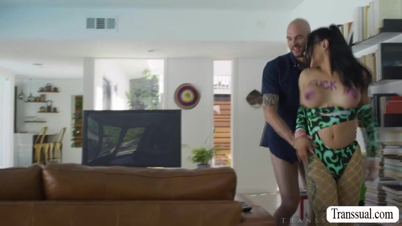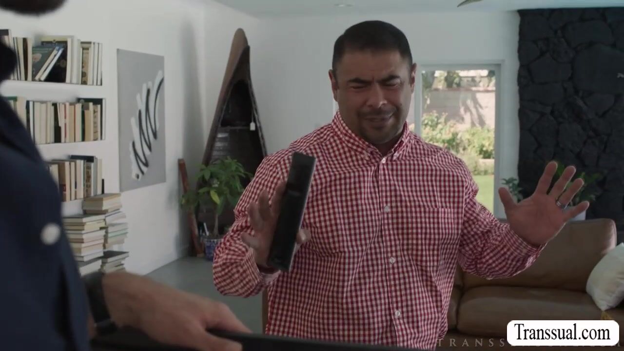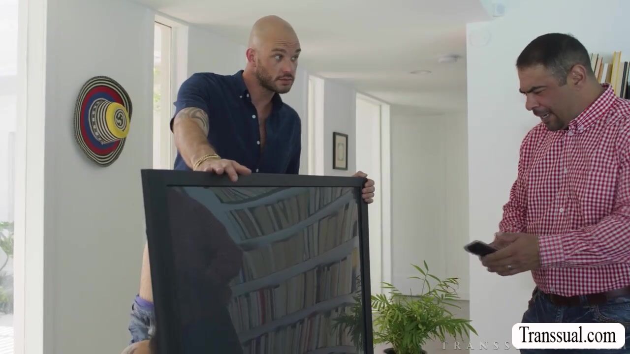 Big tits nerd TS seduces the handyman bald to fuck her wet asshole.First,she throats his hard big cock passionately and in return,the handyman fucks her asshole so deep and hard.Go to Transsual.com for more like this.