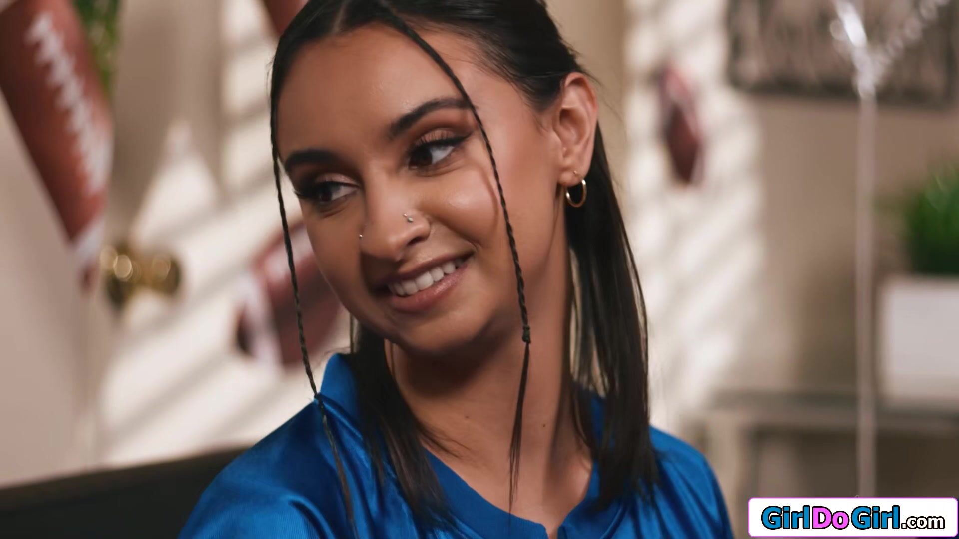 Busty Blake Blossom places a bet that if her team win the three losers have to fuck her.Asian Nicole Doshi,big tits latin Hailey Rose and ebony Ameena Green lose and suck her boobs.The latina is pussy licked and the lesbian facesit and masturbate