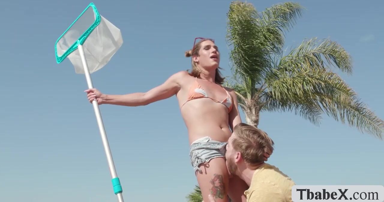 Steve Rickz seduced by this sizzling sexy shemale pool cleaner Kalli Grace.He starts eating her asshole and after that,he lets her suck his dick before he bareback fucks her ass.Go to Tbabex.com for more like this to watch.