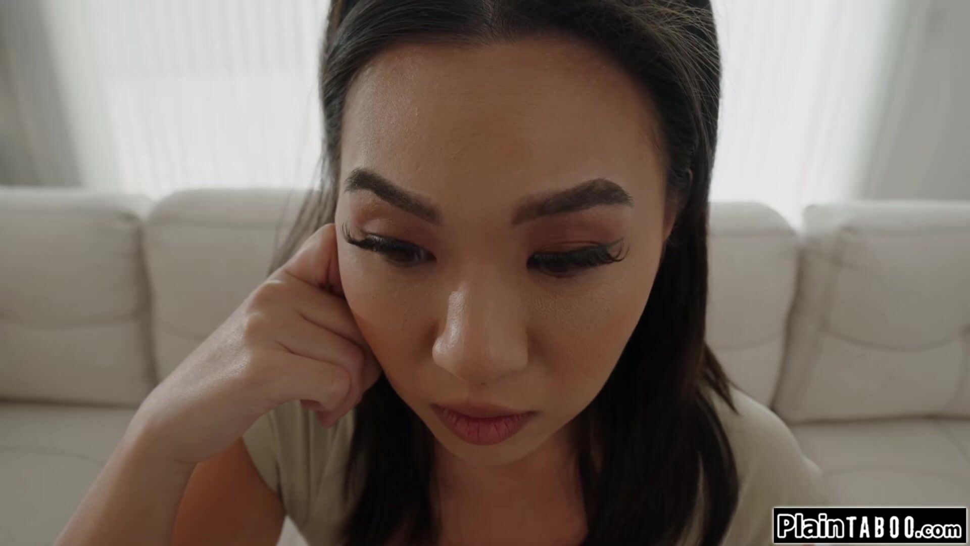 Petite small tits Asian Kimmy Kimm wants to break up with the guy.She feels guilty and agrees to having sex.But is that a smart thing to do?They kiss and he sucks on her small boobs.She deepthroats his big cock and after they fucked its time to tell
