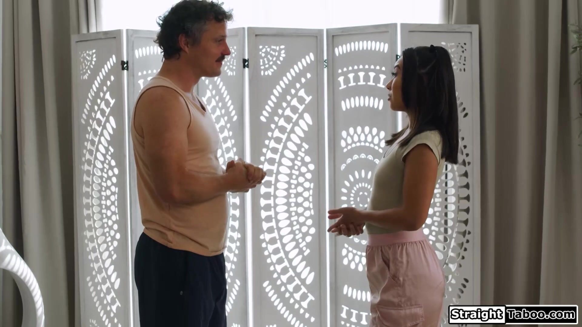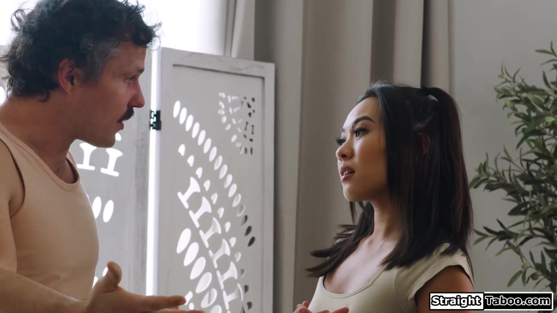 Petite Asian babe Kimmy Kimm does not dare to say no to sex to her companion now that he thinks it would improve his condition.She kisses him and spreads so she can get her hairy pussy licked.The small tits brunette sucks his big cock and is fucked