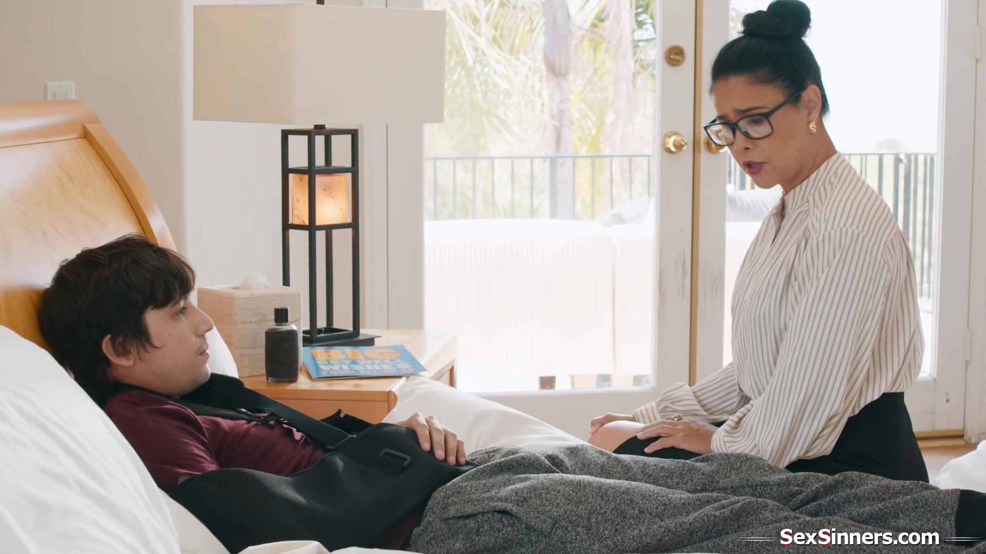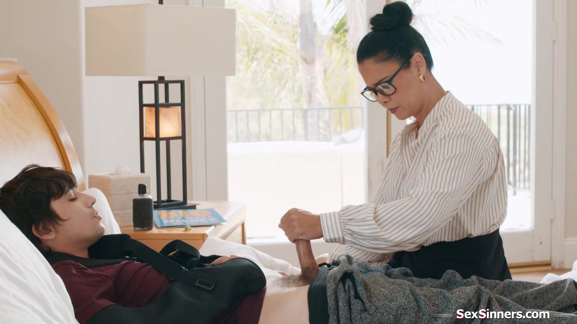 Mature Asian teacher feels so sorry for her student.With two broken arms he cant even jerk off.The milf decides she could give him a HELPING HANDjob.Now that shes gone across the line anyways she deepthroats and tittyfucks him before riding his dick