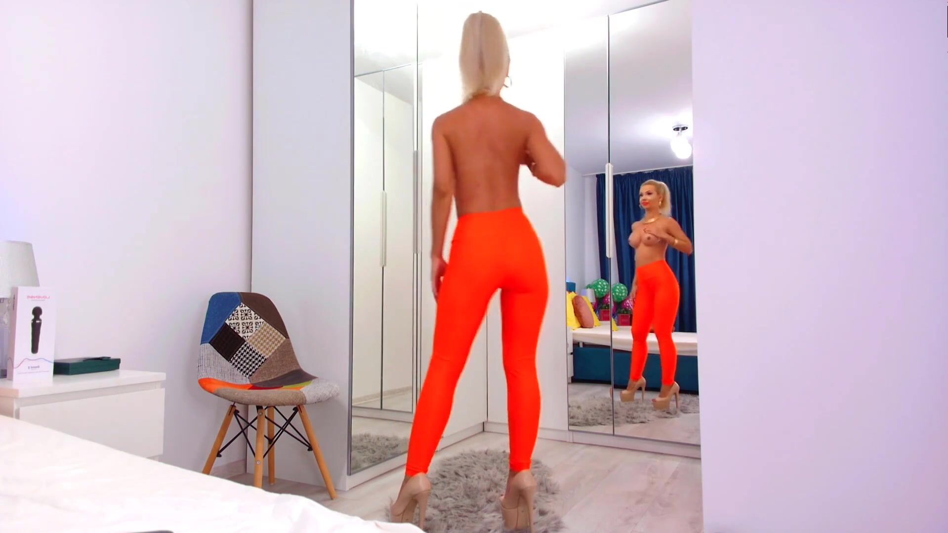 Moldavian Bliss adores to tease in orange leggings