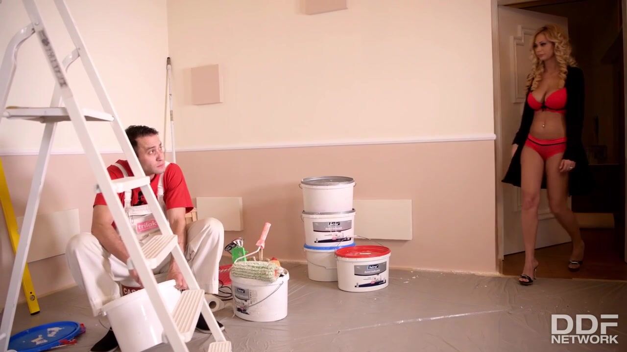Painter Kai Taylor observes half naked Peneloppe Ferre in her bedroom and gets a hard-on in his pants as he sees her gorgeous 34D / 75E tits. The blonde babe with green eyes and a shaved pussy stars in today’s Busty episode by DDF Network and gets her wet clam filled by that hard-working young man. She feels immediately attracted to him and starts blowing his dong before sliding that hard meat up and down her busty cleavage.