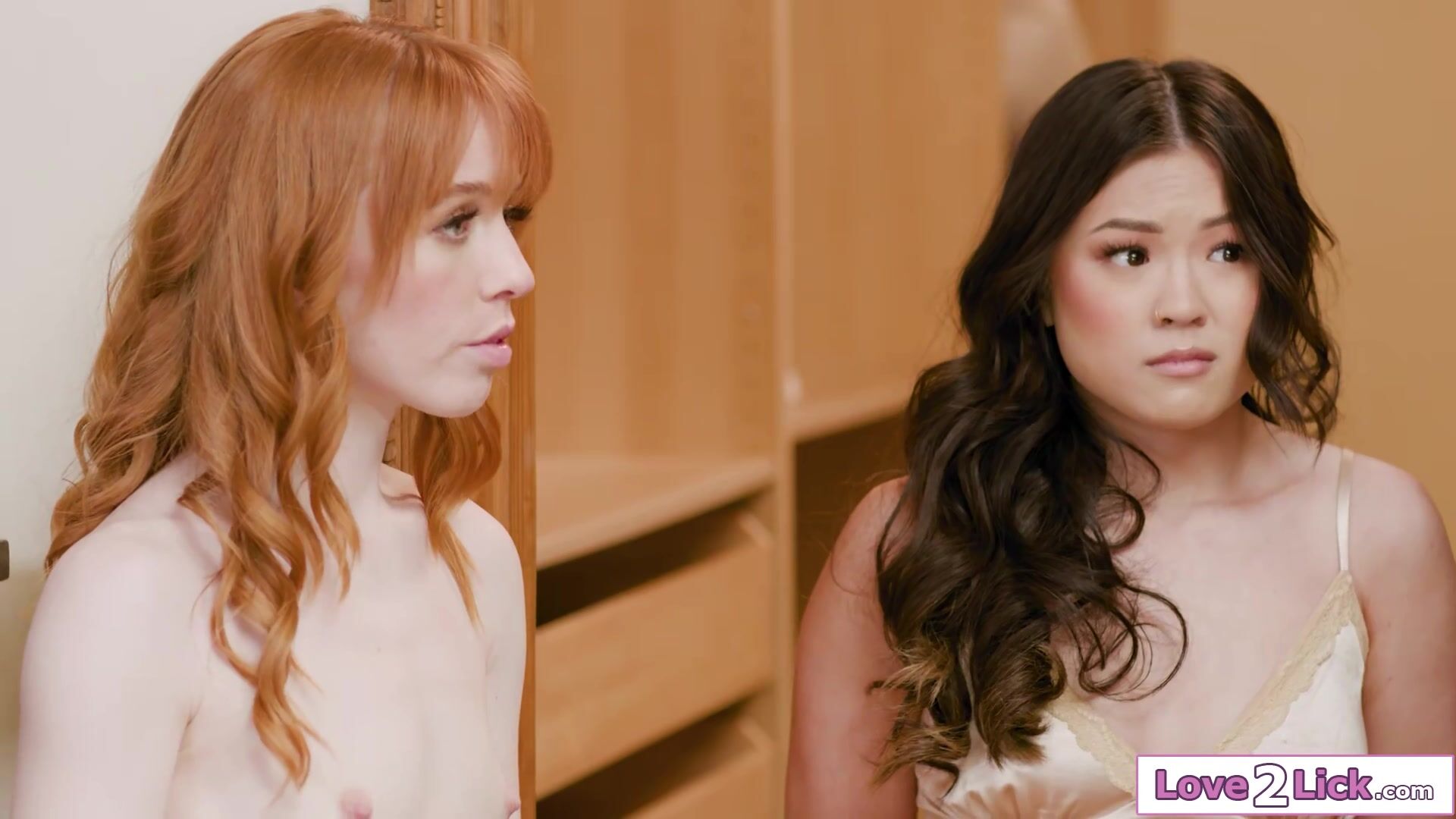 Madi Collins cheats with asian Lulu Chu when wife Whitney Wight comes home.Lulu masturbates on them and squirts.The puddle of juice gets her caught.The brunette asks for a threesome and the small tits lesbians lick pussy and the redhead squirts