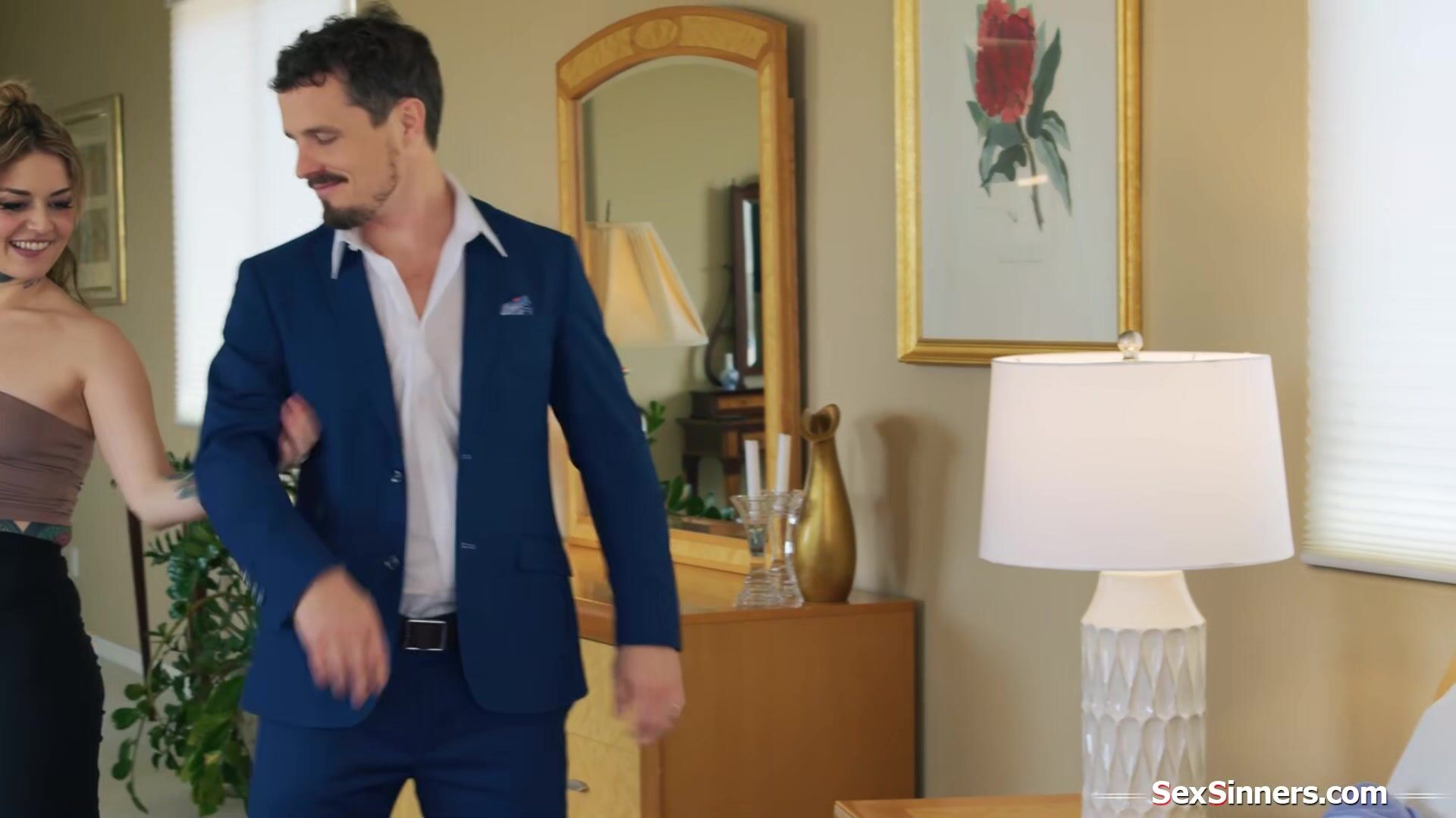 Tattooed Vanessa Vega blindfolds her husband making him unaware shes cheating with her assistant while sucking his cock.The small tits latina is facefucked while the other bangs her.The petite slut rides on her hubbys dick when the other guy dps her