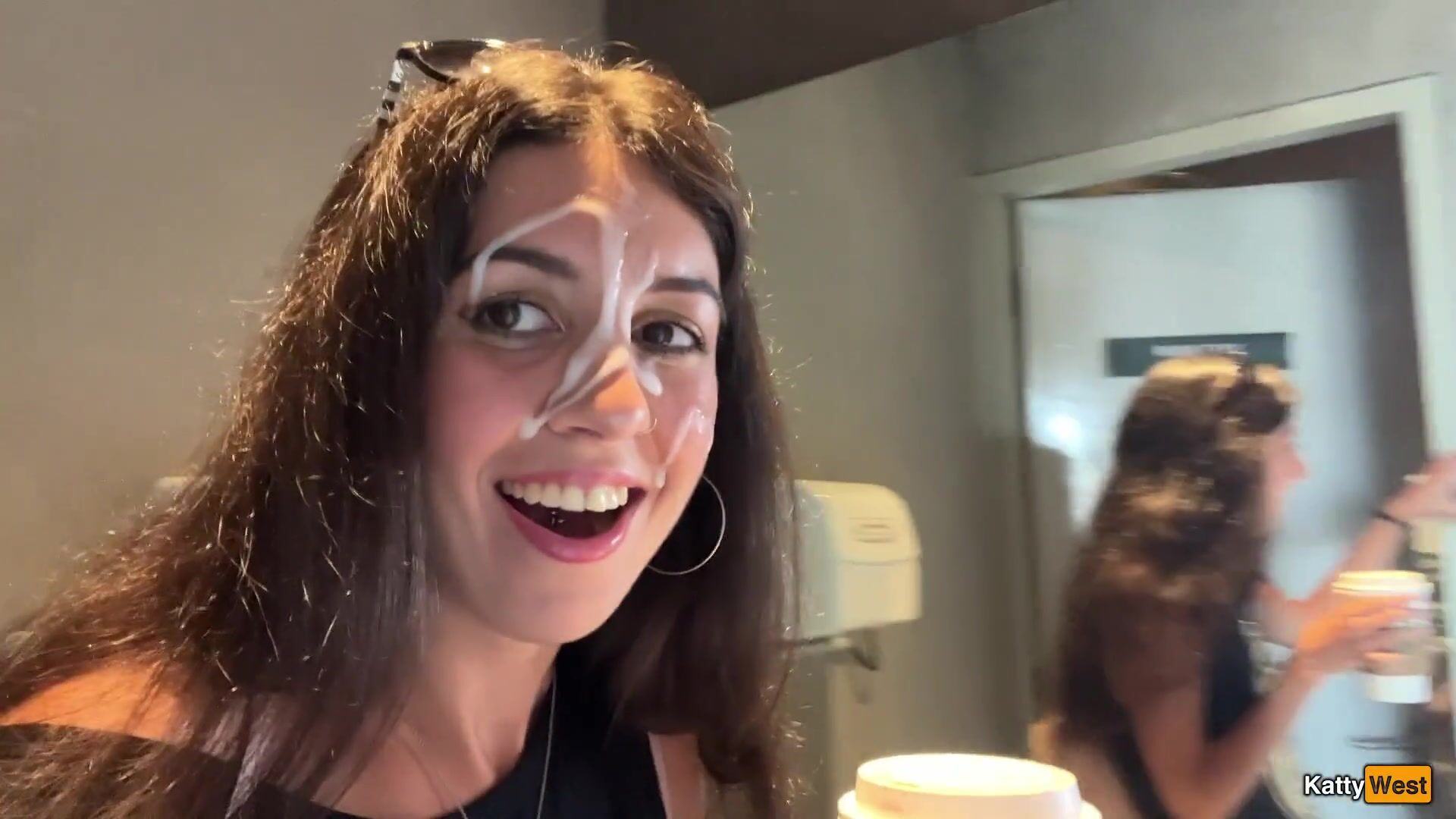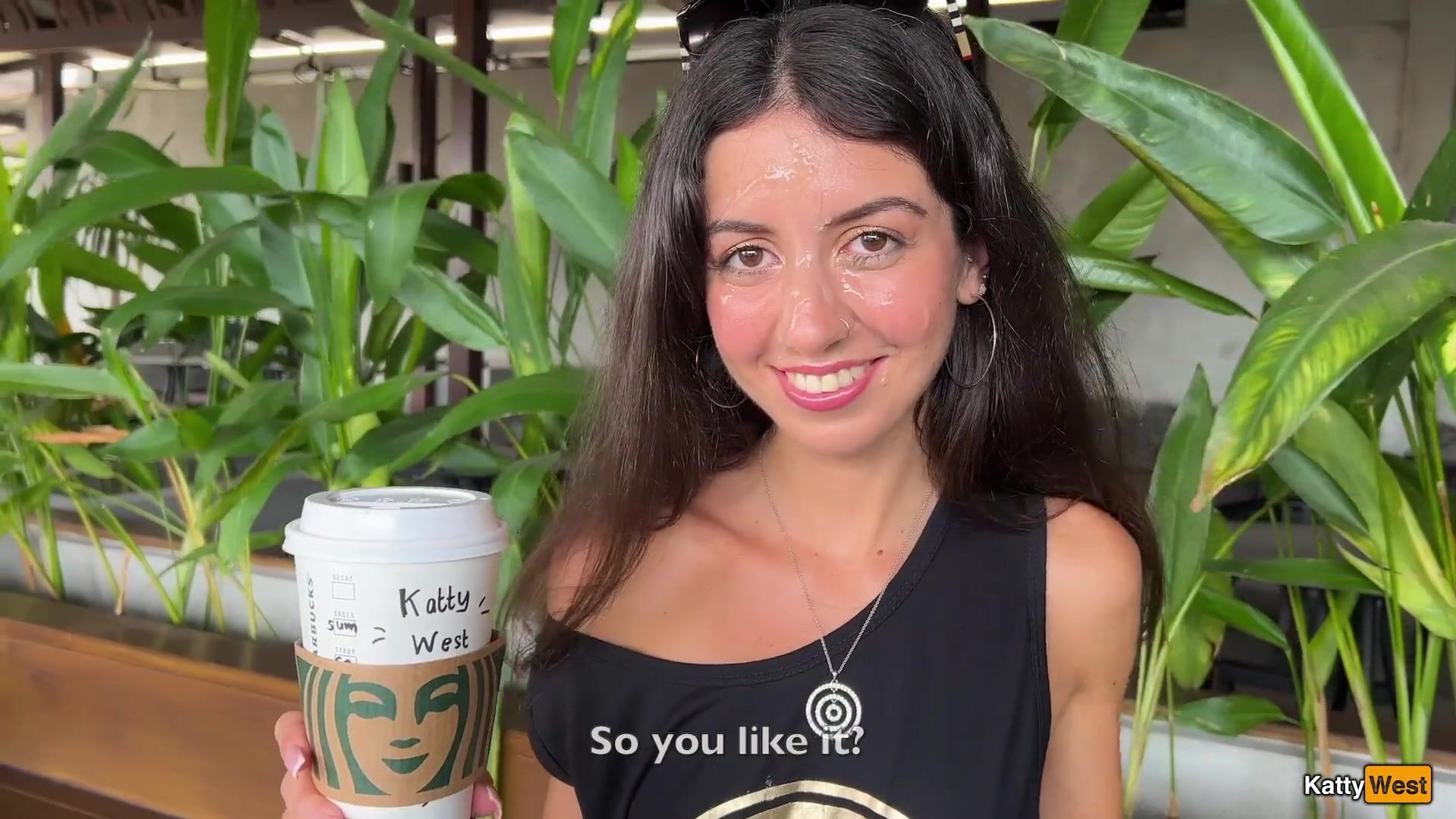 Katty West - Crazy CUMWALK in STARBUCKS - Blowjob in Public Toilet, Drinking coffee with Sperm