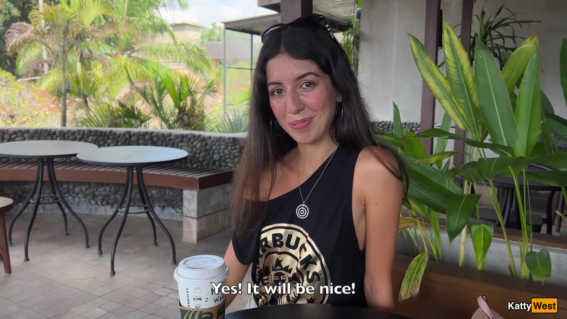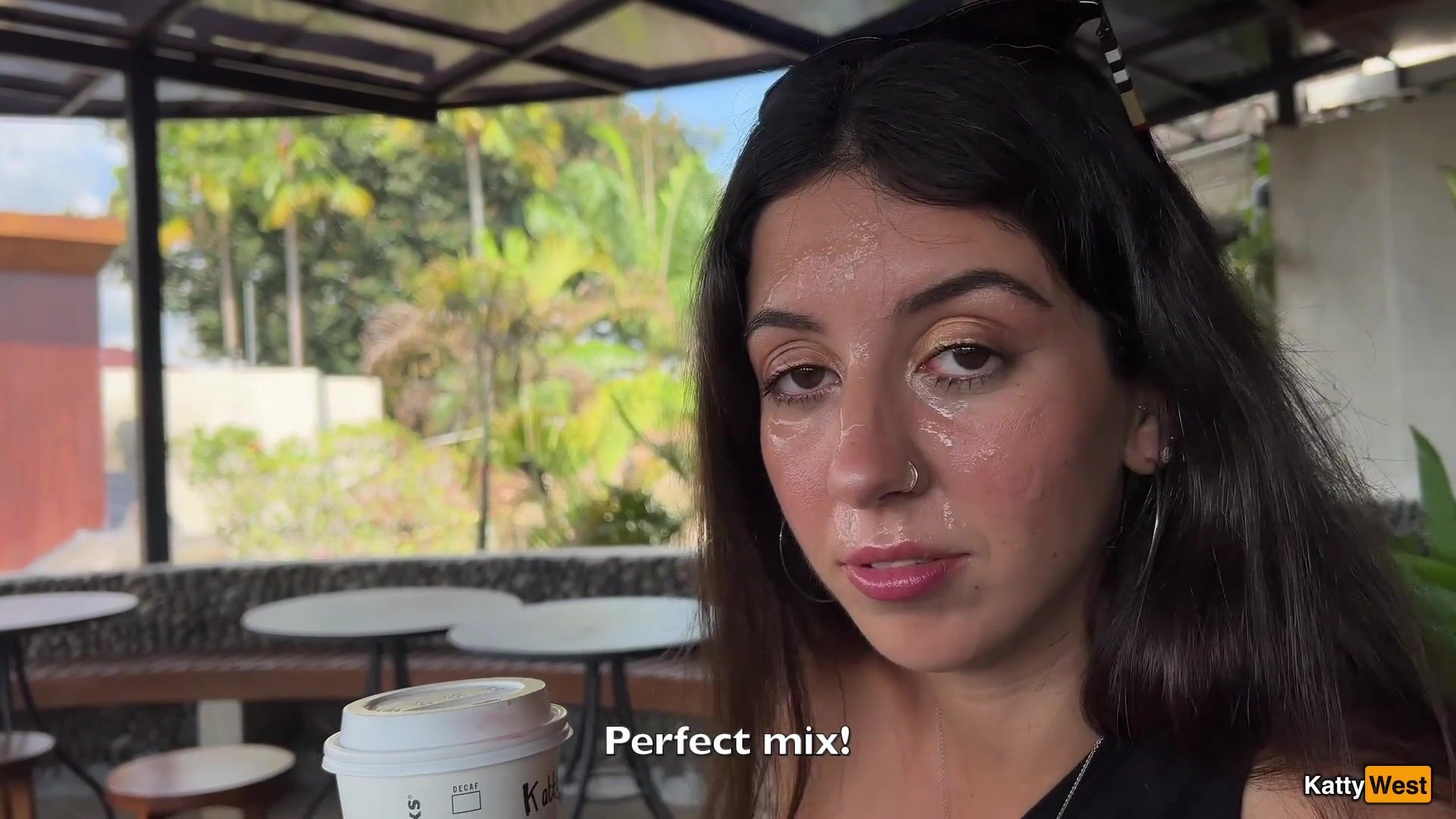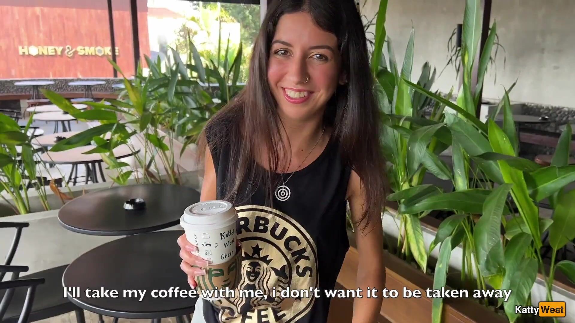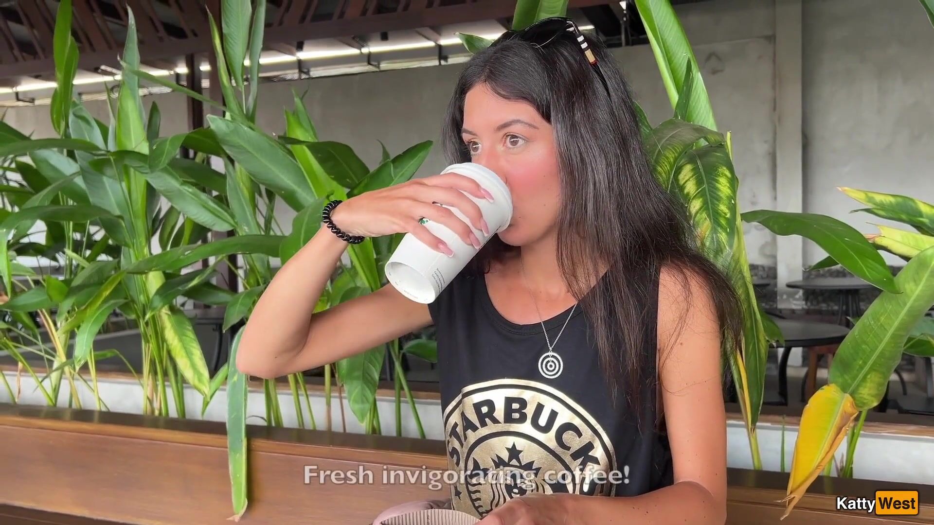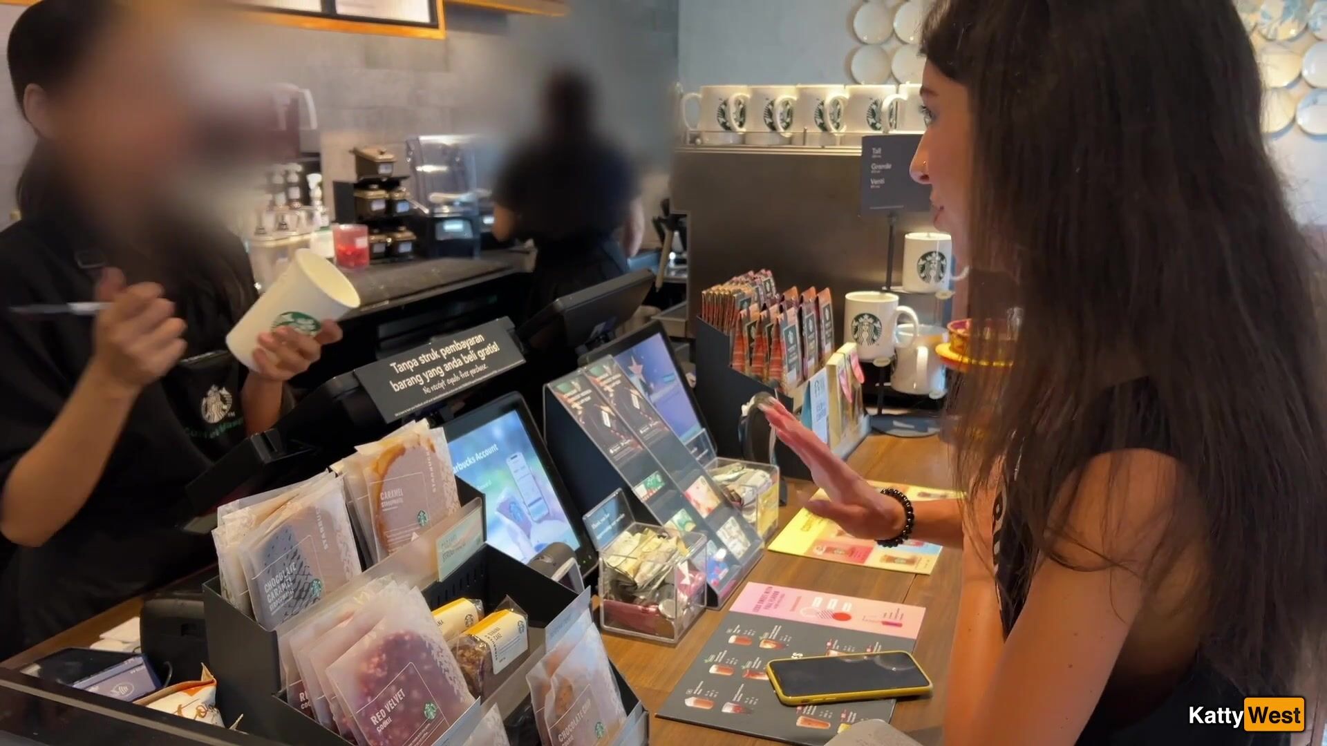 Katty West - Crazy CUMWALK in STARBUCKS - Blowjob in Public Toilet, Drinking coffee w