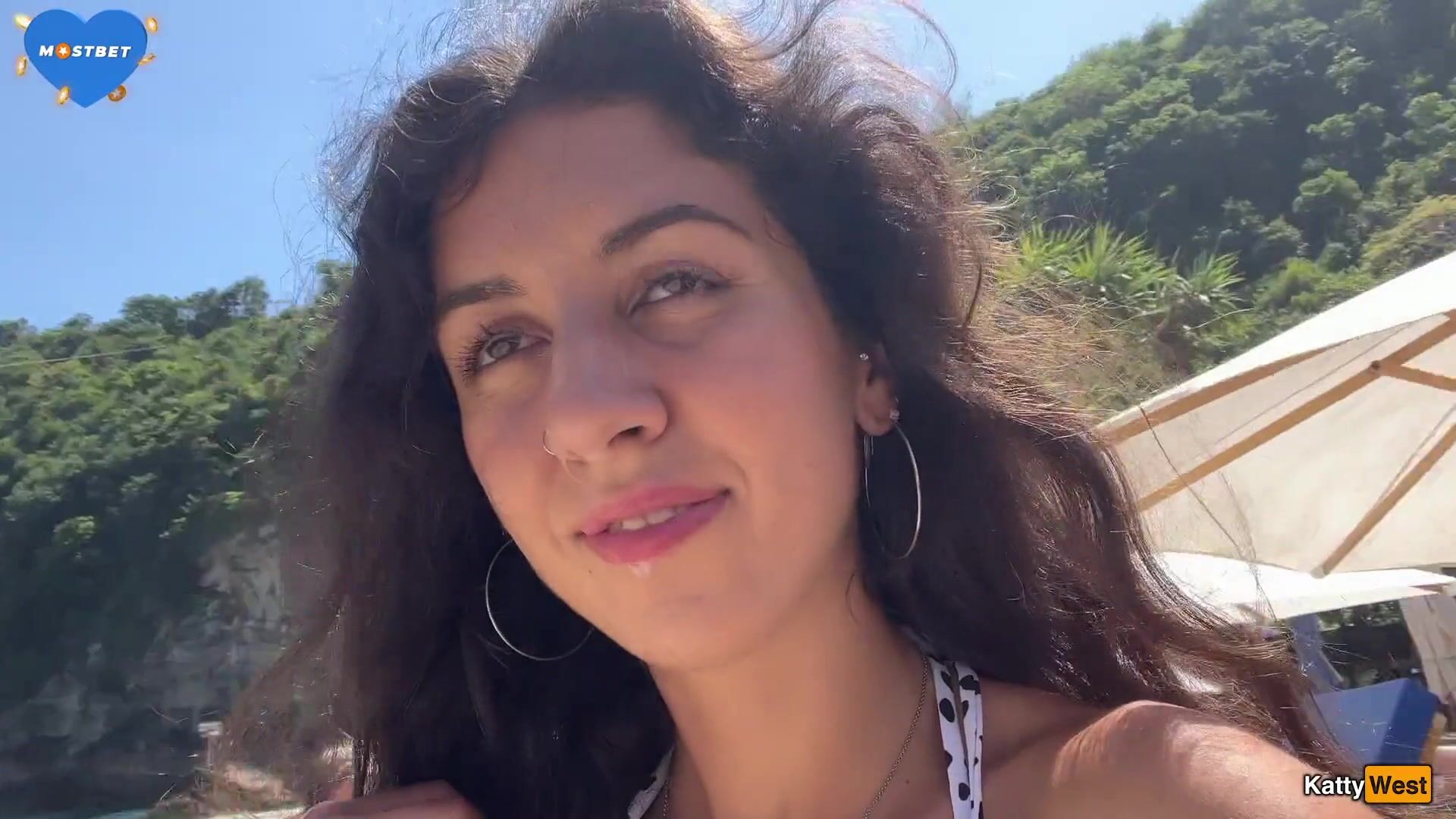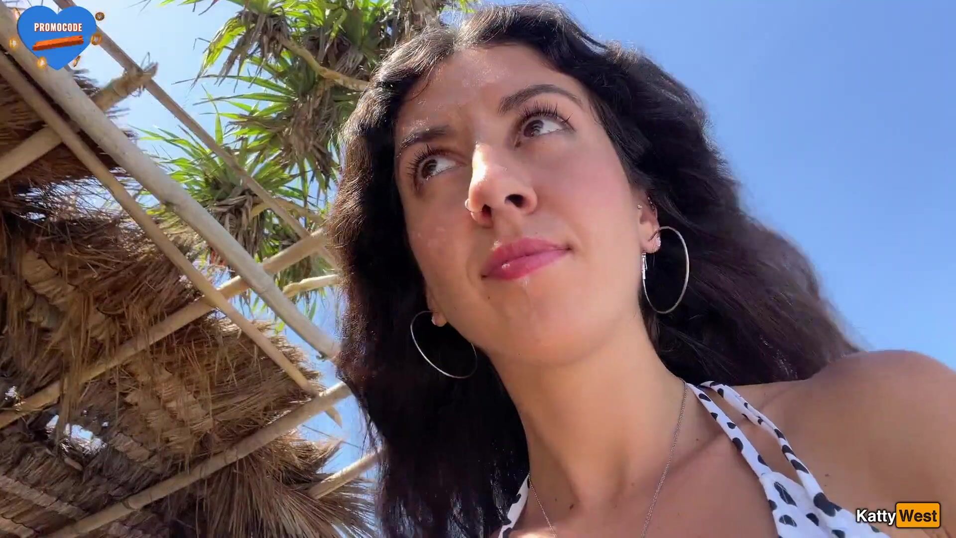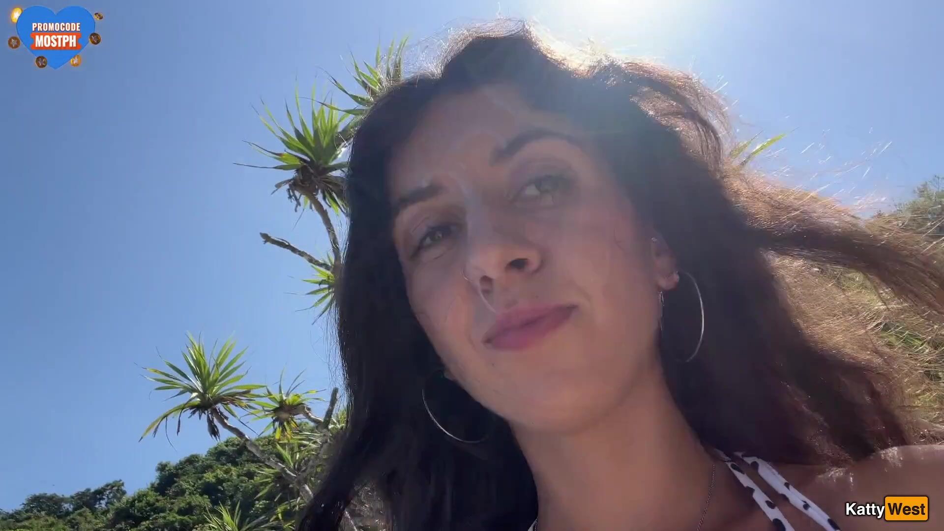 Katty West - Walking with hot cum on my face on a public beach full of people - Cumwalk