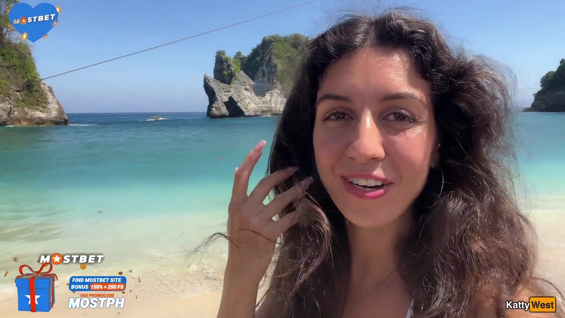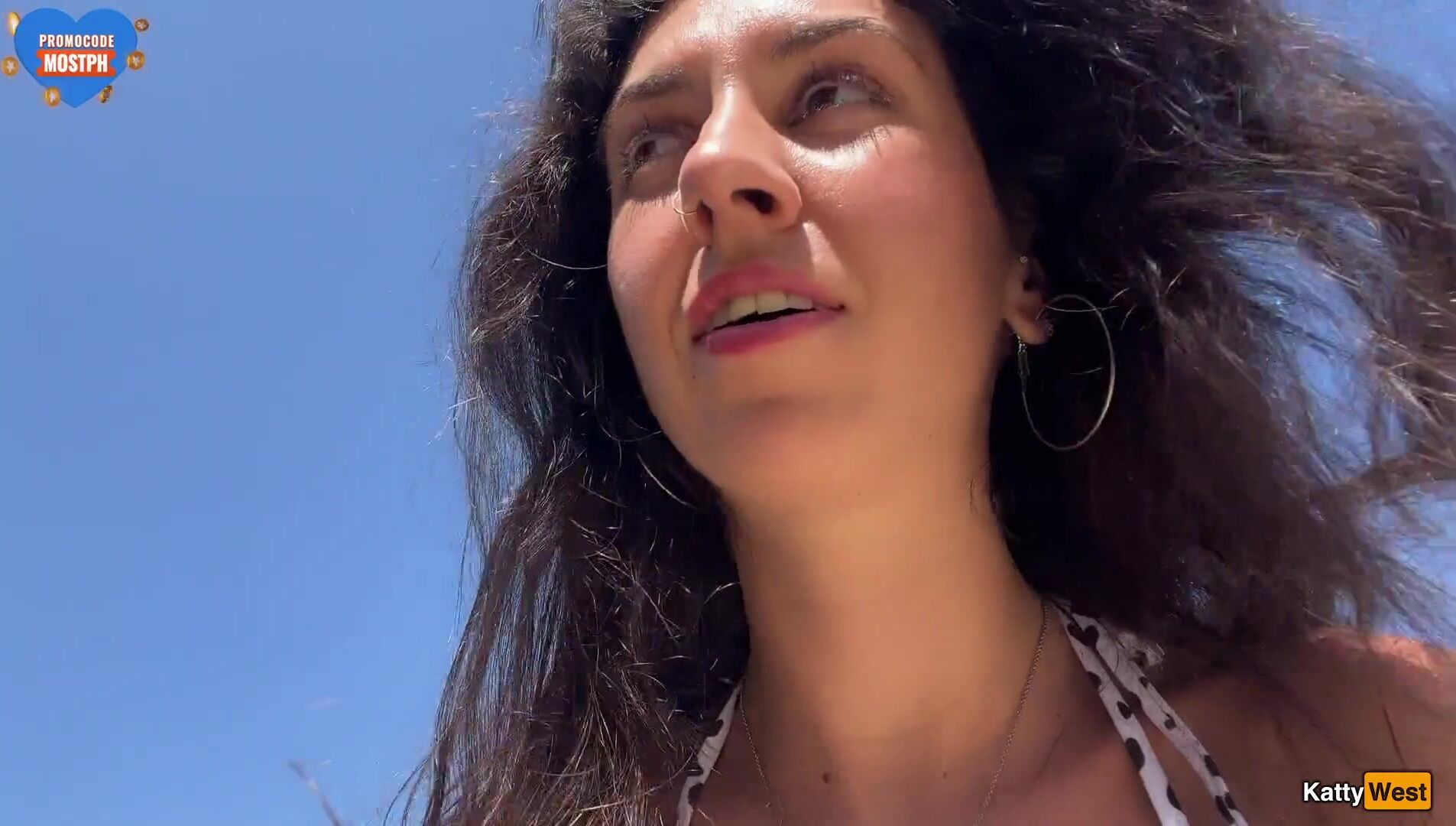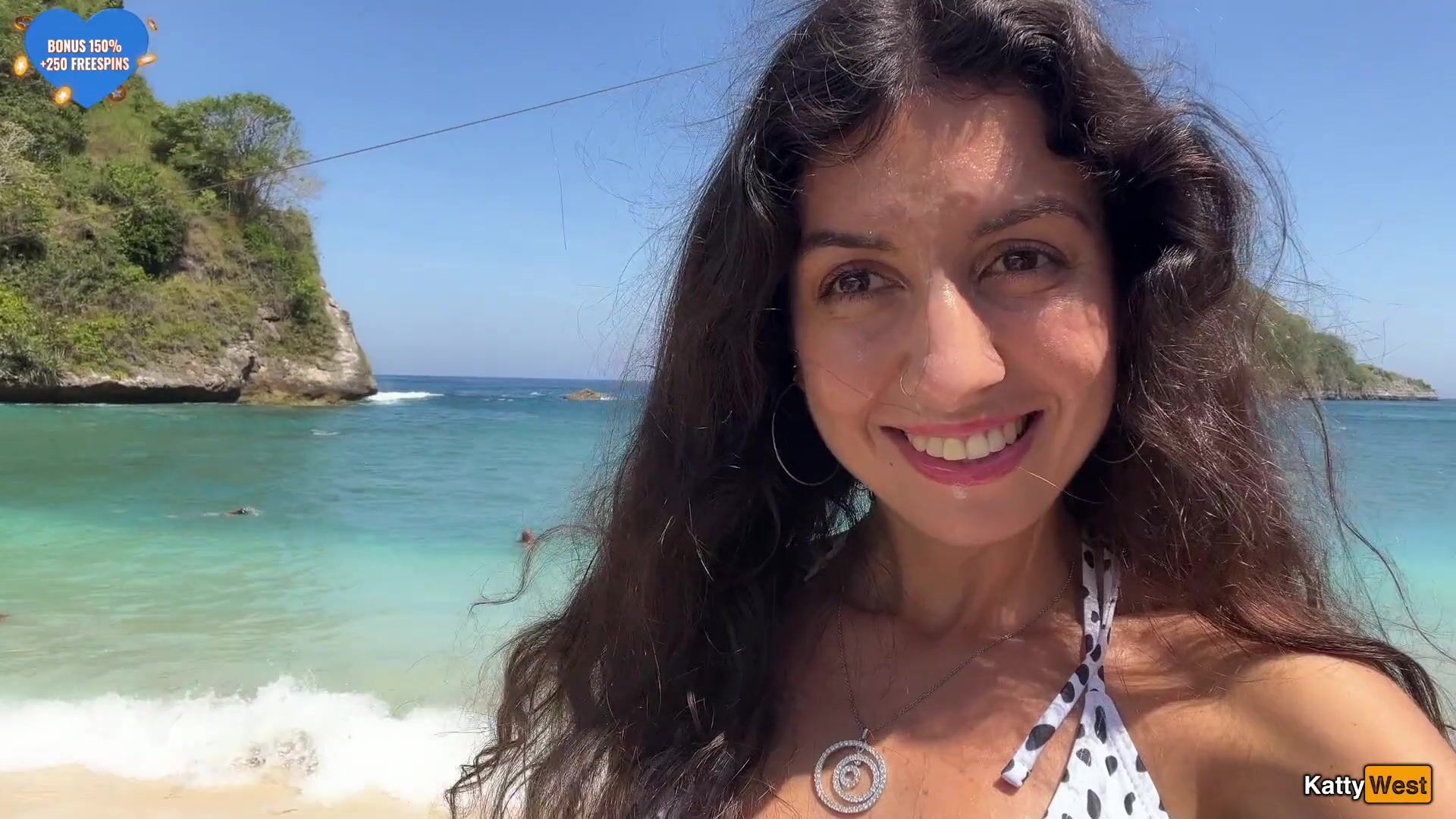 Katty West - Walking with hot cum on my face on a public beach full of people - Cumwalk