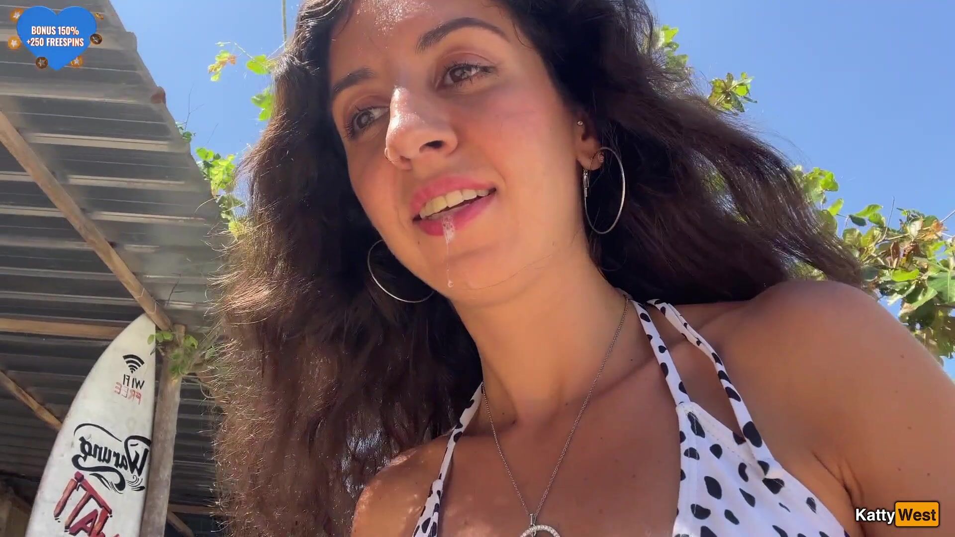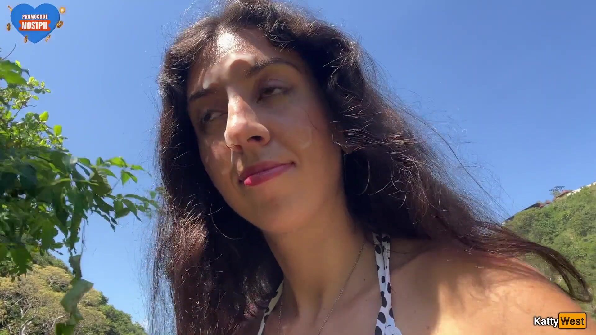 Katty West - Walking with hot cum on my face on a public beach full of people - Cumwa