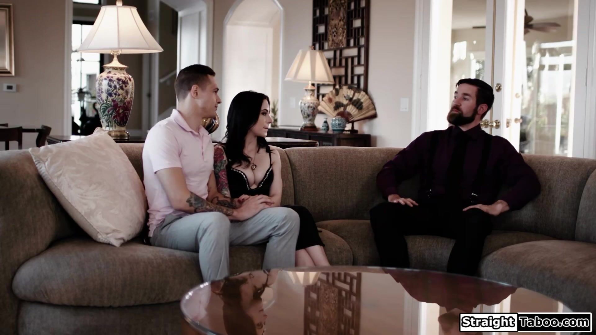 Anna De Ville is sucking off her bfs stepdad when he walks in.They team up to teach the tattooed brunette a lesson.The petite babe has to deepthroat two big cocks now and anal rides her bfs fat dick while being facefucked.Then the stepdad wants a go