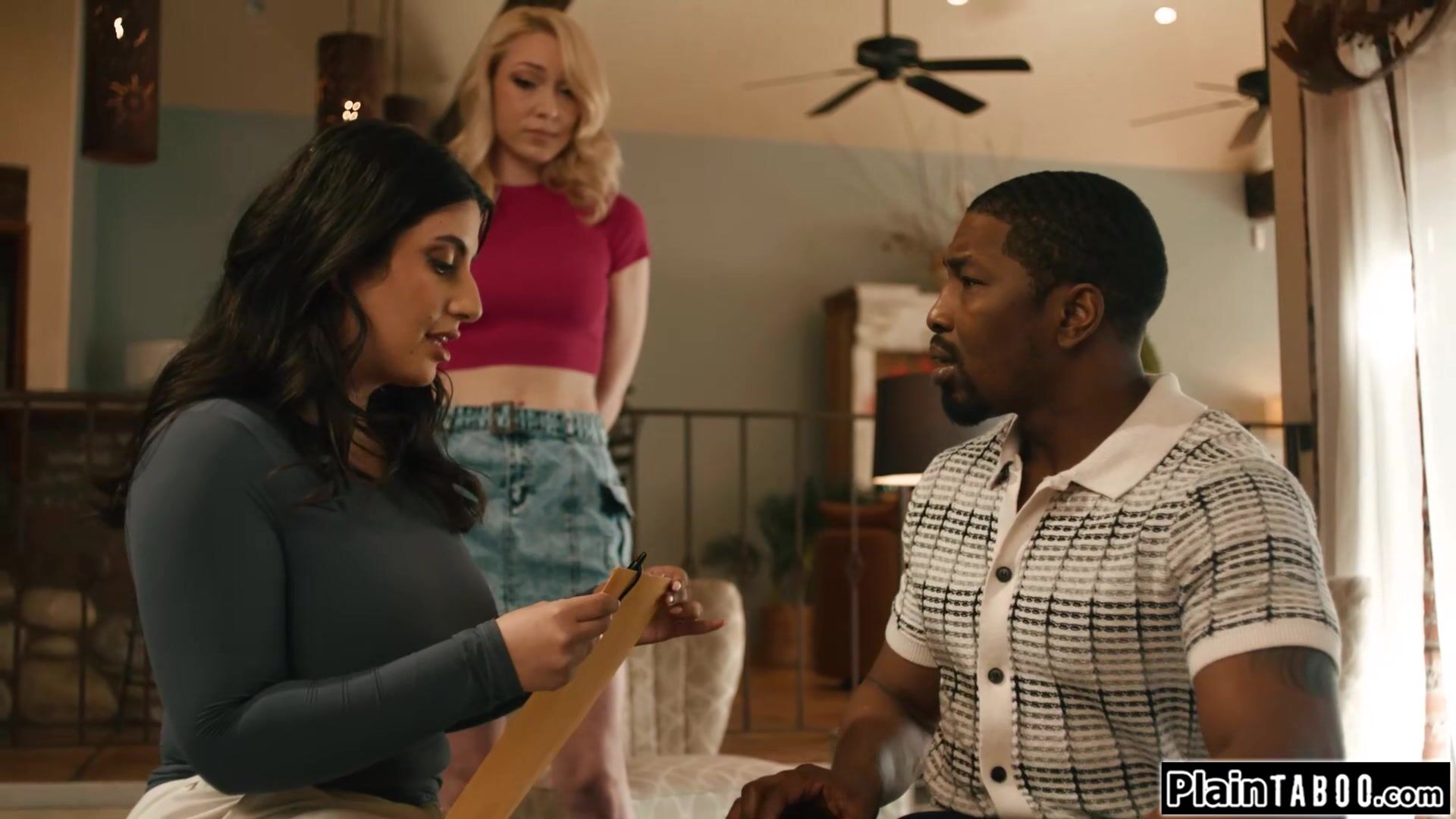 Isiah Maxwell is shocked when his busty wife Sarah Arabic hands him the divorce papers ifo her new gf Lily Labeau.They need to fuck for his signature.The lesbian is facefucked by his bbc and facesits her banged gf before she gets her first dick in