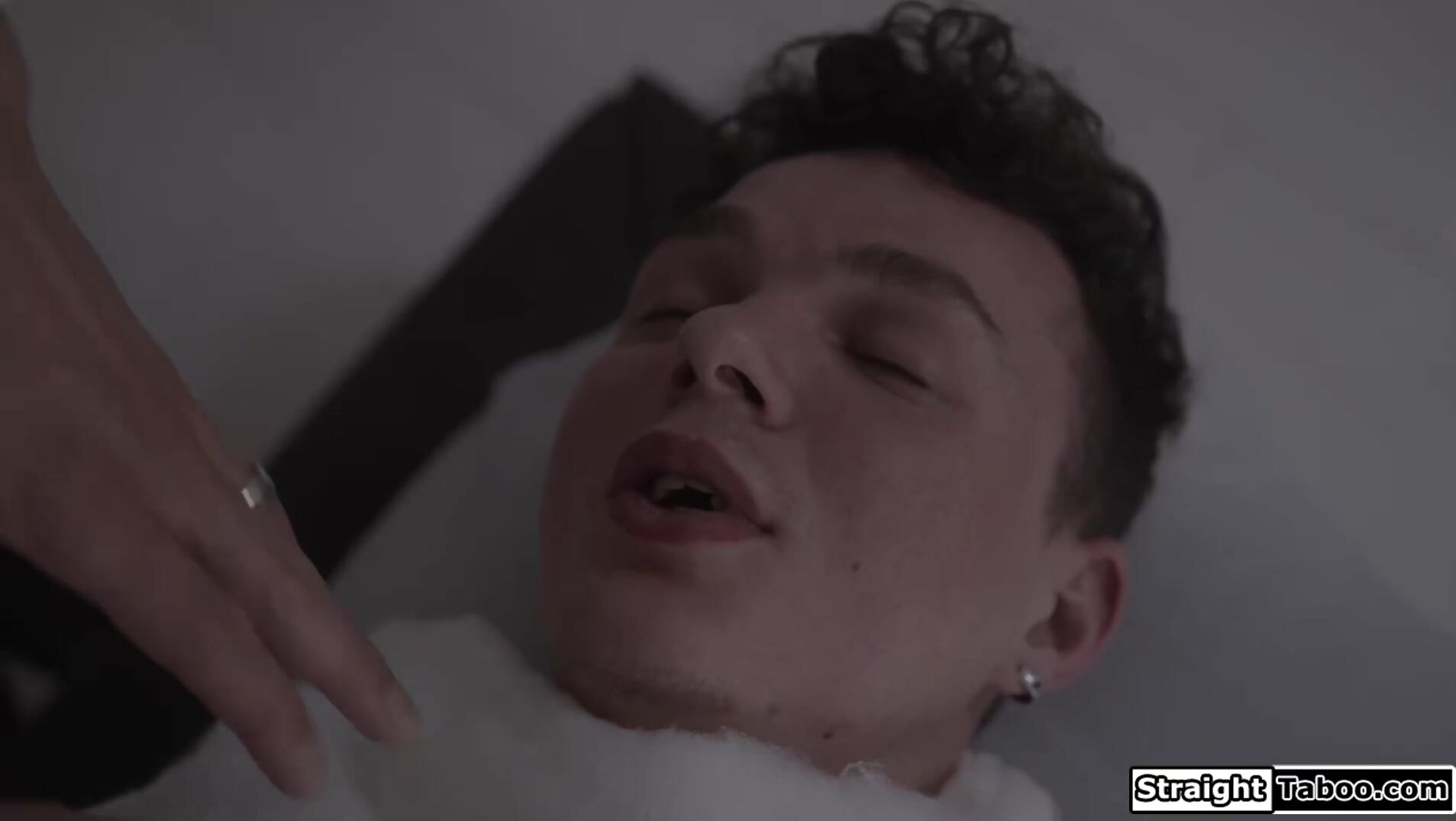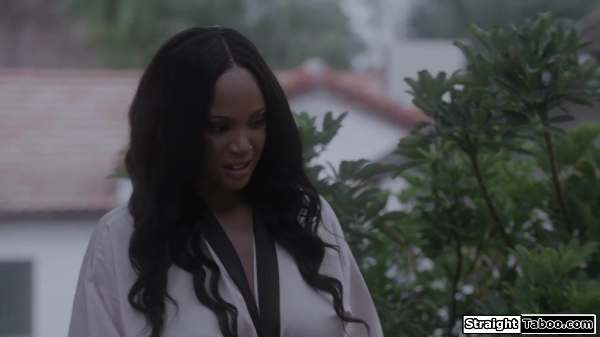 Guy is shocked to see his busty ebony wife August Sky has turned into a spider monster and is on top of her cocooned teen neighbor.The black milf will think about releasing him if she can suck both of their big cocks.The guys fuck the monstrosity