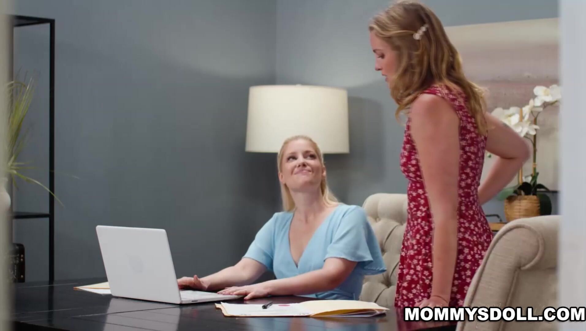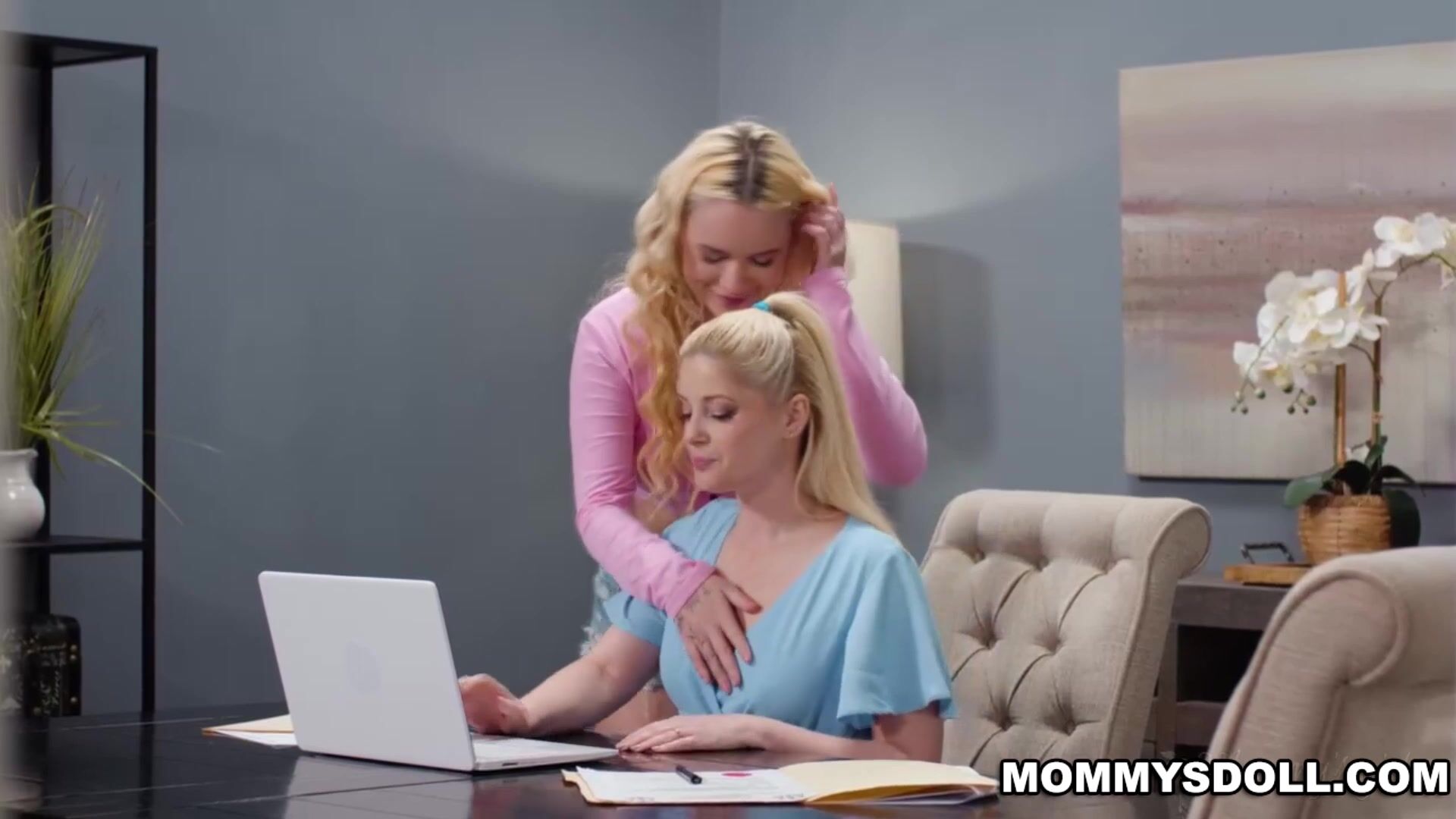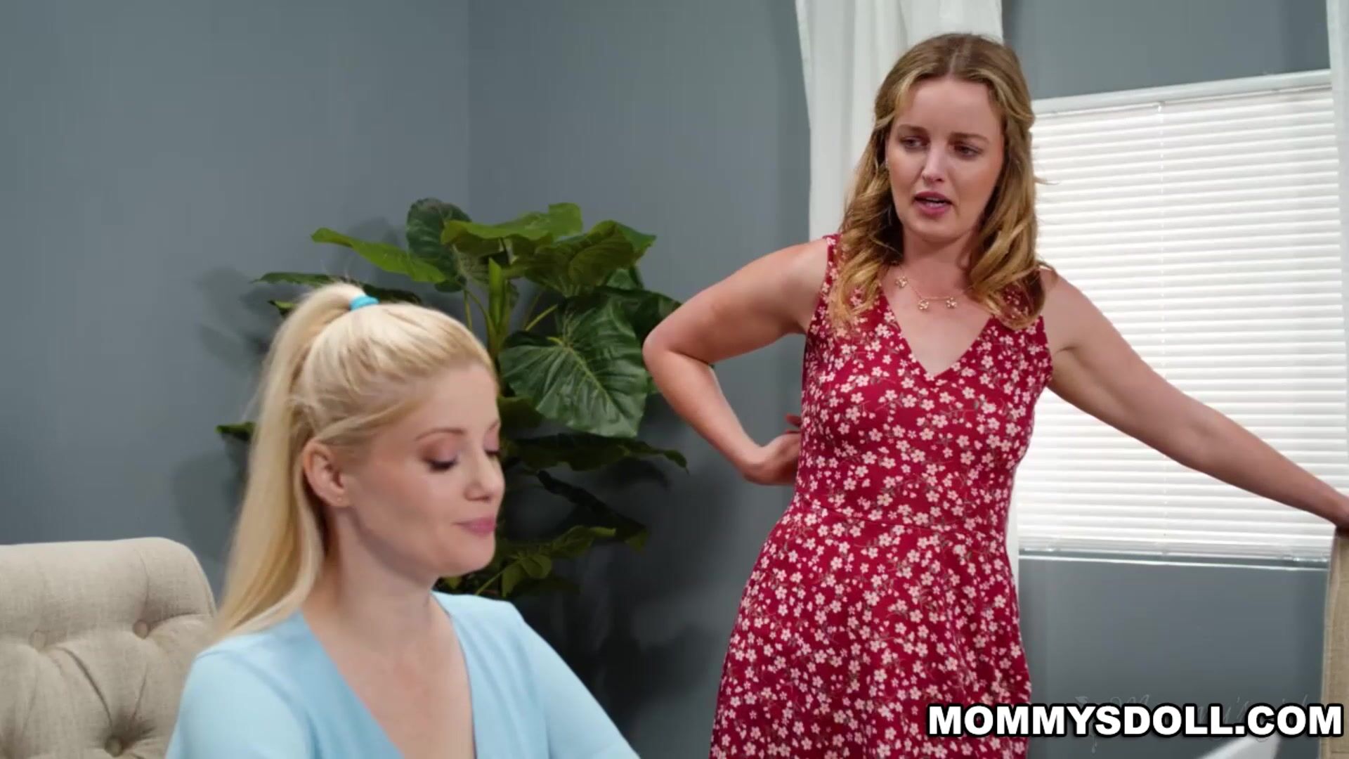 This happens a couple of times, culminating in both Charlotte and Khloe hiding under the table while Charlie tries to sniff them out. But when Charlie finally leaves the house, this stepmom and stepdaughter are finally free to get as loud and filthy as they want... right on the dinner table!