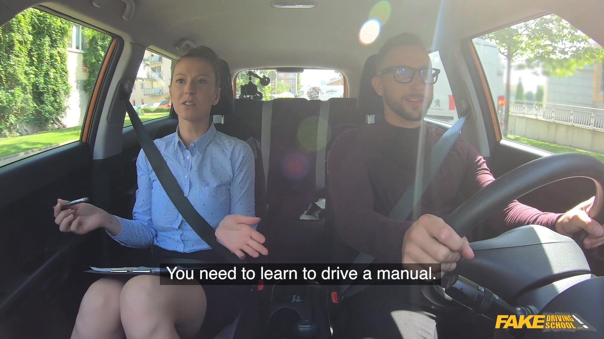 MILF instructor Emylia Argan is having a bad day. Her student Jason X is late, and she's frustrated. Jason tells her he has learned on a simulator, but those skills do not translate the road! The drive is a bumpy one: Jason hits things, doesn't signal, and leaves the MILF scared for her safety Demanding he pull over, Emylia gives Jason two options, lick her pussy to calm her down, or leave right now. Jason chooses the wet pussy, and licks Emylia between her thighs. Turned on, Emylia tells him to fuck her, and then she gives Jason a naughty blowjob. Climbing on top of his dick, Emylia uses Jason’s dick to cum, then wanks him off for a facial!