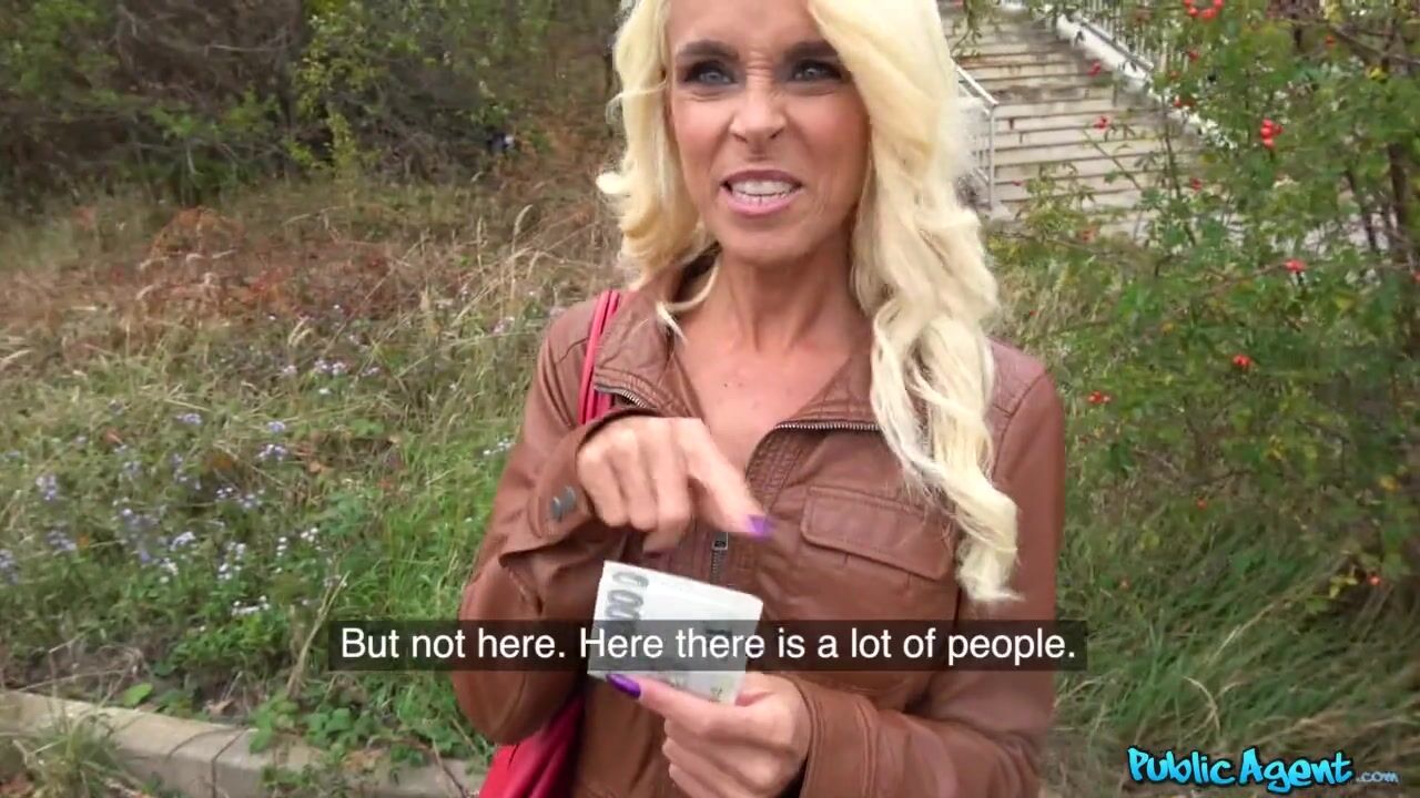 I saw Sophie Logan walking along the side of the road, a blonde MILF who told me she was a tourist from Germany. I speak a little German, at least enough that I was able to ask her if she wanted to make a little money. Sophie loved money, so I offered her 2000 crowns to show me her big boobs. 2000 was not enough, but 6000 was the magic number. She was in town to party, so I offered her 4000 more to see her butt, then an additional 10k on top of that to suck my dick! We went off to a quiet wooded area and I played with her bum as we kissed, then she gave me a blow. I fucked her hard against a tree until I came on her huge butt!