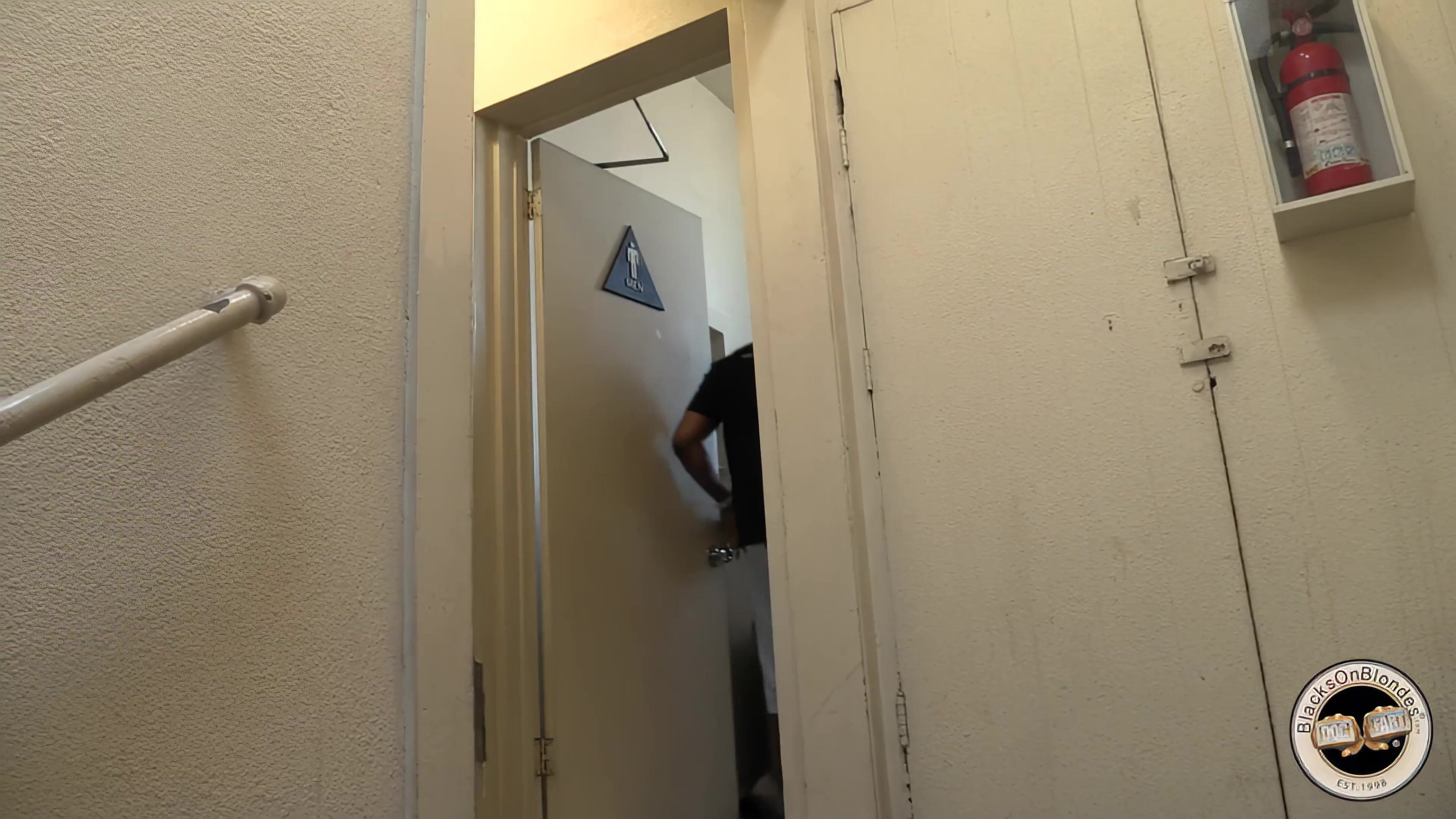 Jack Napier and Shane Diesel have been called in for a meeting with the staff here at Dogfart. We find both icons of interracial porn heading towards the restroom right before the scheduled meeting begins. However, Riley Reid is prowling for big black cocks and she's now following them inside the men's room. Once inside, Riley nearly startles both black guys as they're using the urinals. Riley's lack of shyness is evident when her knees meet the filthy ground. Jack and Shane are gonna run late to the meeting seeing as how Riley's mouth is sucking big black cock in this vile men's bathroom. Shane and Jack lay their huge black pipes into Riley's throat right before taking turns wrecking that white pussy. Does Riley care that she's fucking in a place that hasn't seen a mop in years? Hell no! Does Riley care that anyone can walk in her as she's gorging herself on two of the biggest black cocks in the business? Not at all. Riley Reid's bathroom ordeal sees her bent over a trash can and fucked into oblivion. Shane and Jack don't seem to care that the Dogfart brass are waiting on them. Then again, we can't really blame them for being late to our meeting after seeing what they did to little Riley Reid.