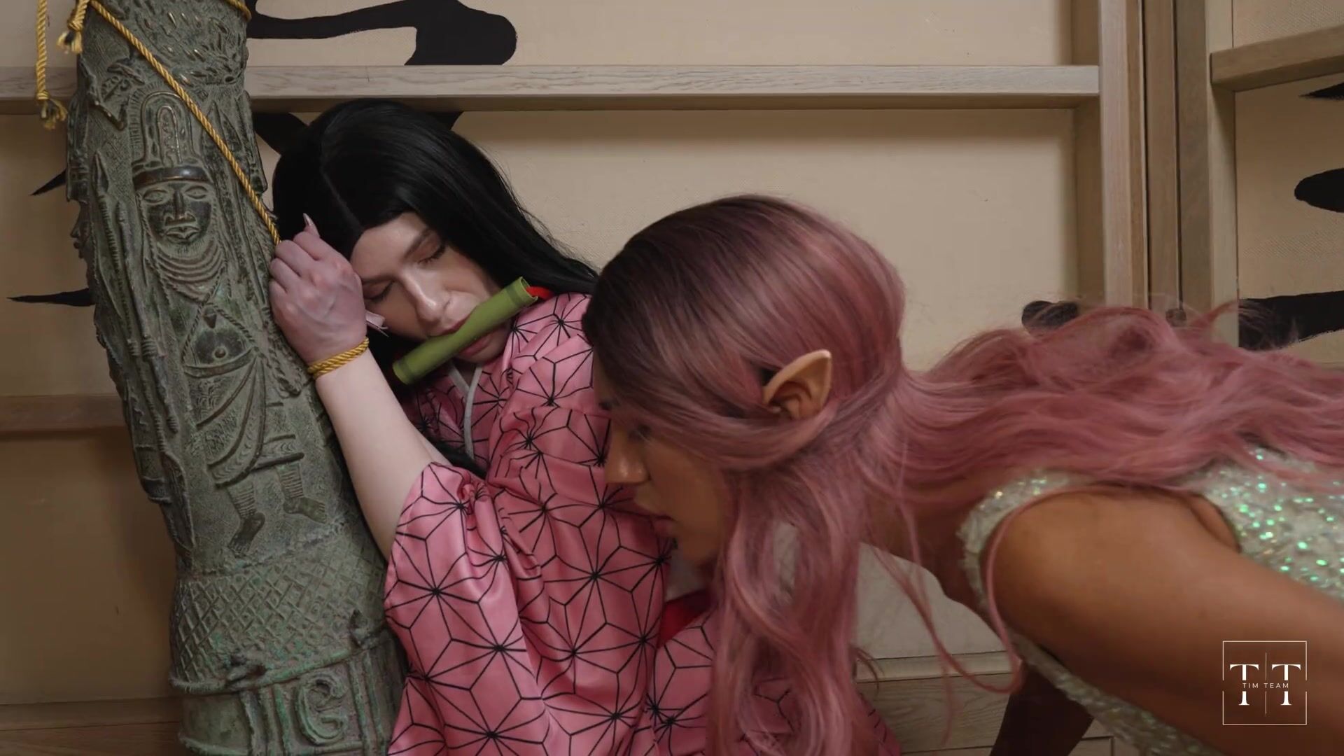 Jadilica - Cute Pixie Lesbian Playing Scissor With a Nezuko Kamado. Demon Slayer.
