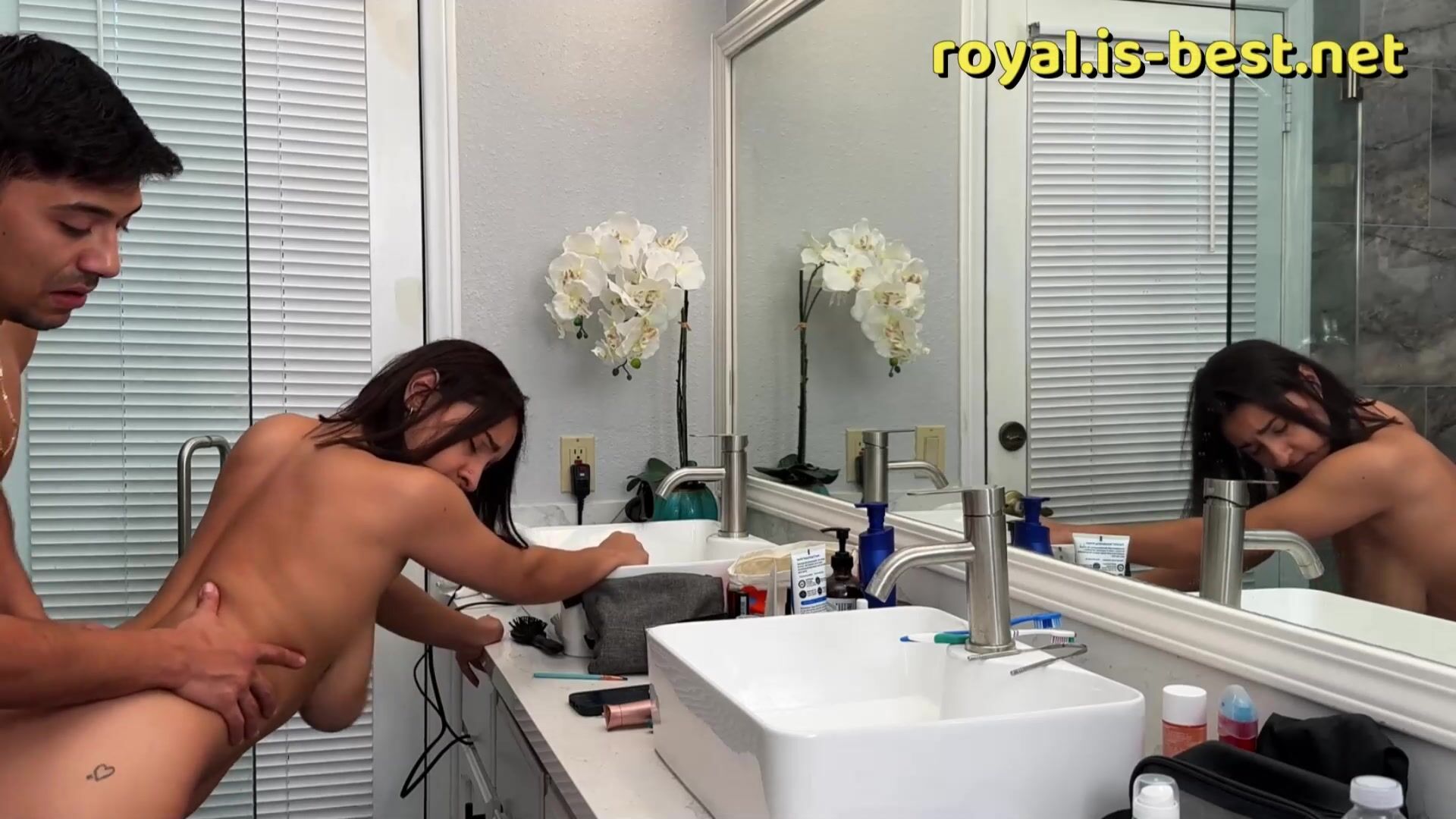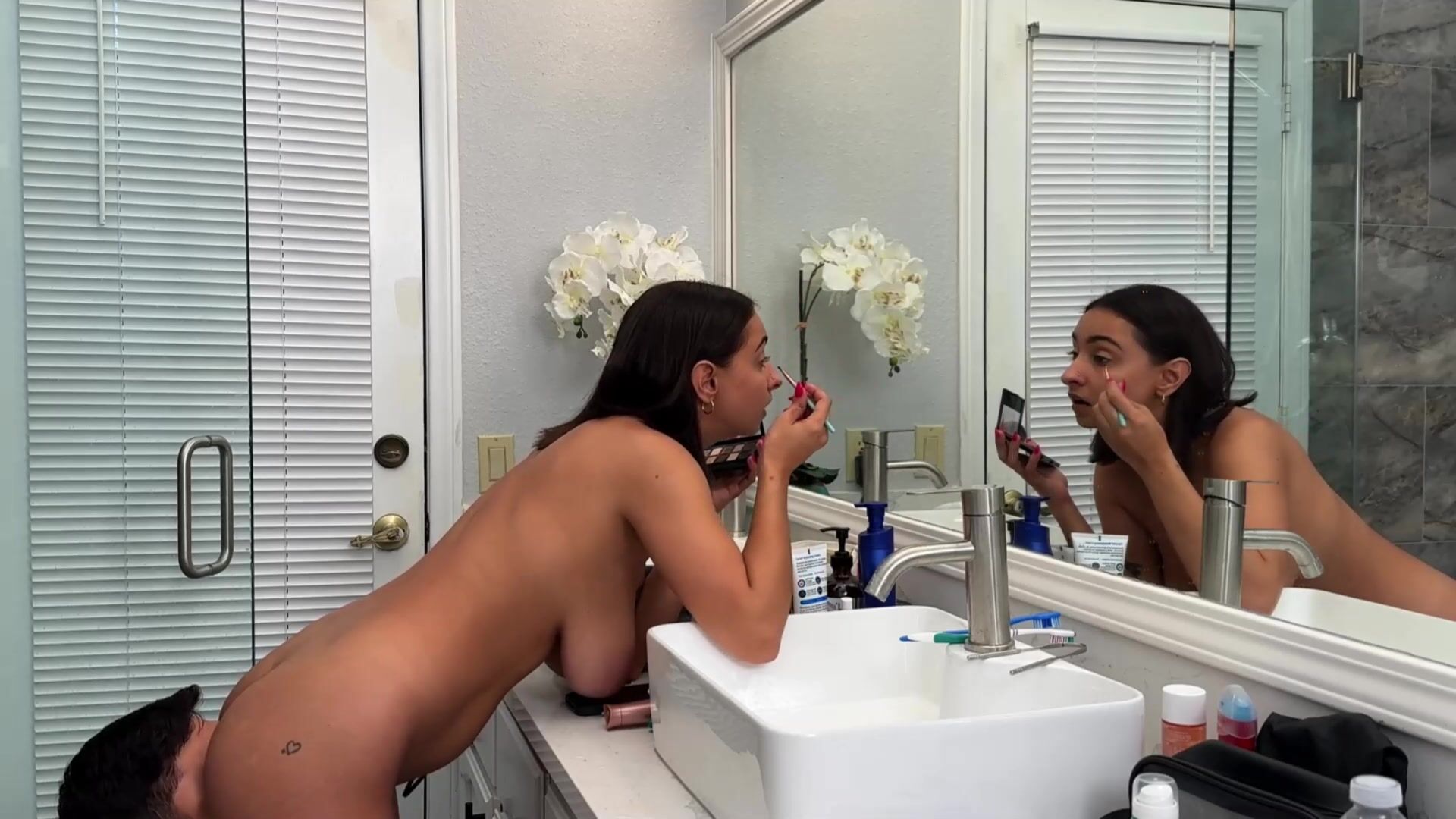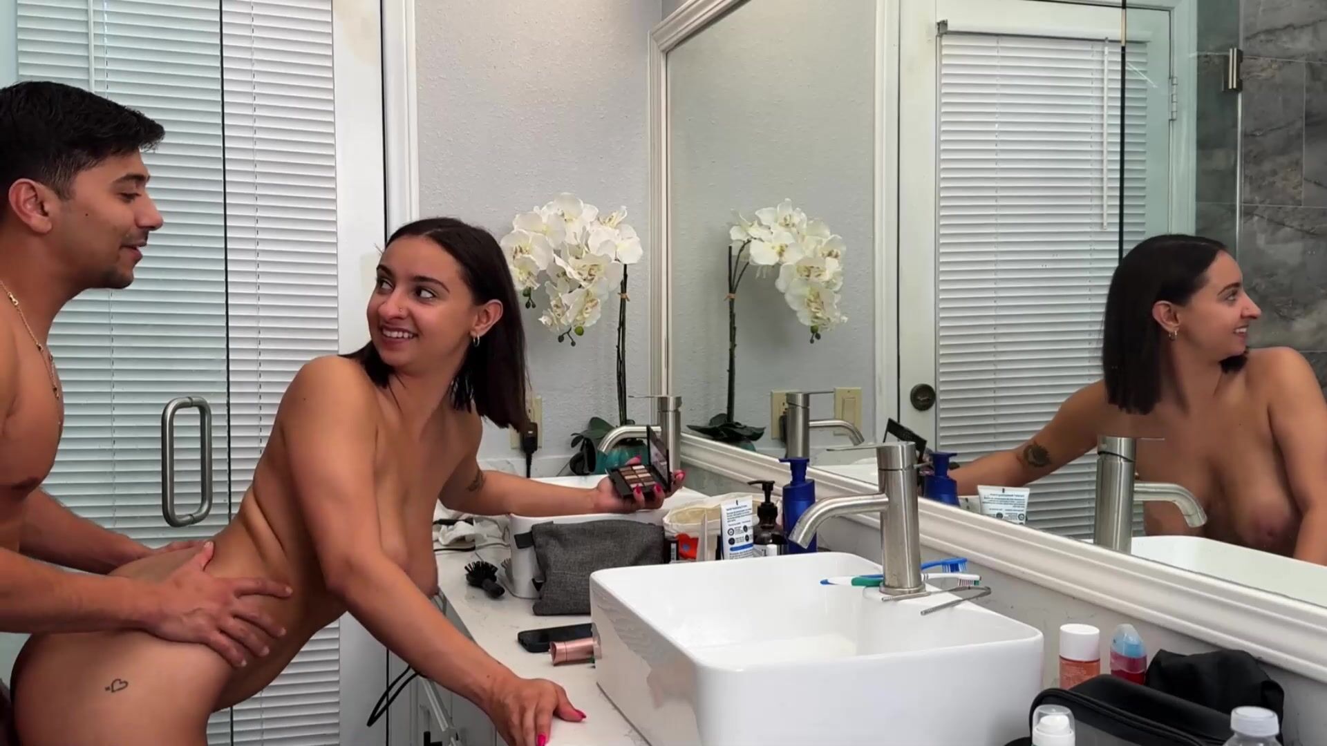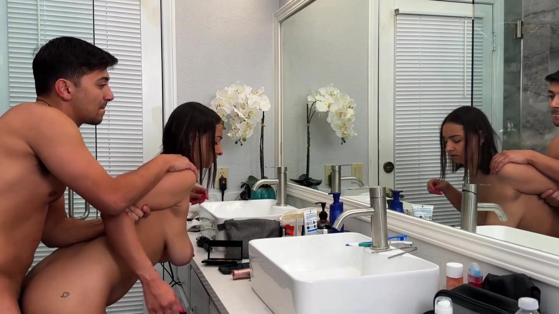 Very busty stepsister gets fucked infront the mirror while doing her makeup