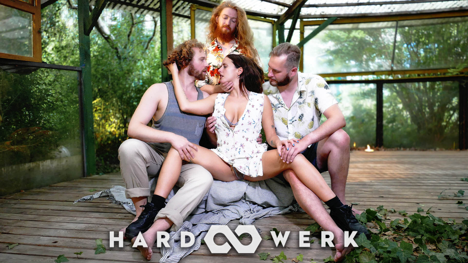 Becky does it all in this intense 3 man gangbang in a shed. Rustic creeking as she gets fucked by all three. Her Submissive insatiable sexual energy can be felt as they fuck and and eat her wet pussy.