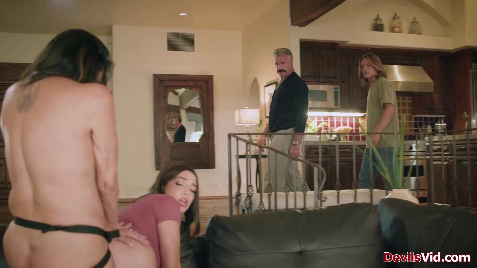 Milf Reagan Foxx dragged her stepdaughter Rissa May into a family taboo.She fucks her with strap on then her husband and stepson join in.The stepdad is fucking his big tits babe while the dude takes the stepmom.They switch,stepbro fucks his stepsis.