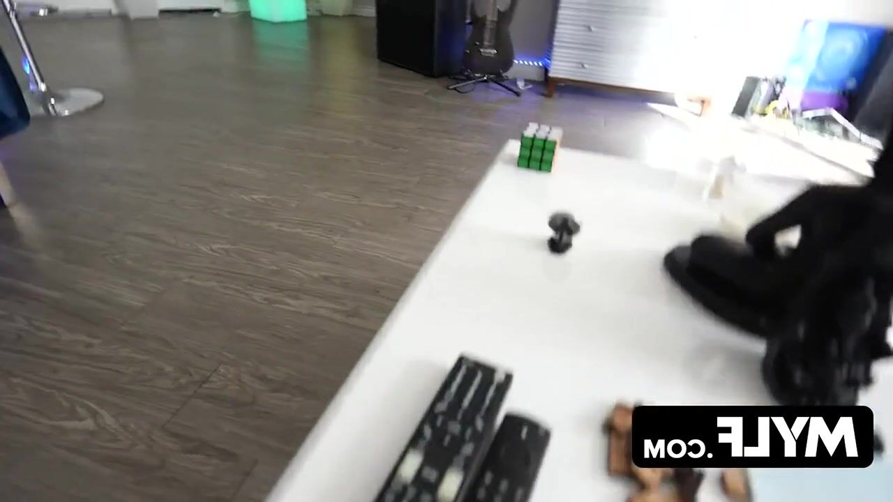 Remain indoors, mature woman with strong intimate appeal - a very attractive older female wearing close-fitting athletic pants chokes on a large erection while performing her stretching exercises.