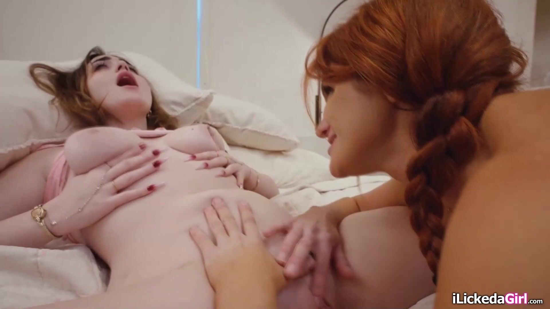 Stepmom Elise London is sharing the bed with her brunette stepdaughter Lilibet Saunders.The petite teen gets horny when she caressed her big tits.They kiss while the milf is masturbating her shaved pussy.Elise is licking her cunt before facesitting.