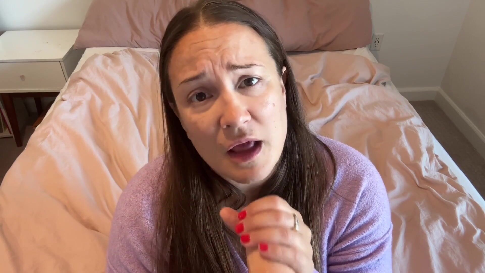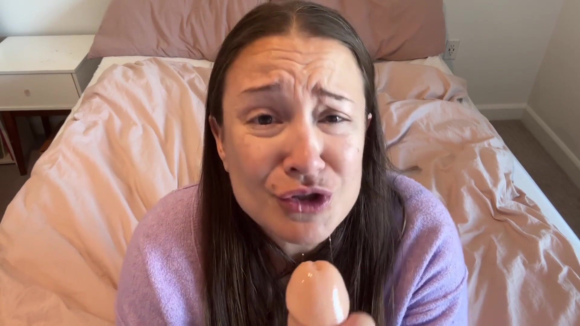 You come into your stepmom’s room with something to tell her. You’ve been watching the most taboo porn lately and you want to film your stepmom giving you a blowjob. She’s appalled and disappointed and worried. She says no over and over and over…..clearly upset and distressed as you keep asking her….