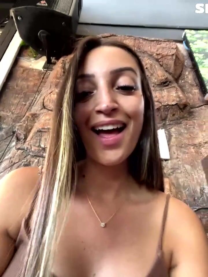 Exotic brunette with striking eyes, full lips, and a playful vibe flaunts her voluptuous figure in a skimpy brown dress. Visible tattoos like a hawk on her arm add edge. She teases with smiles, tongue out, and hands on her chest, lounging on a cozy couch against rustic stone walls. Pure webcam seduction.