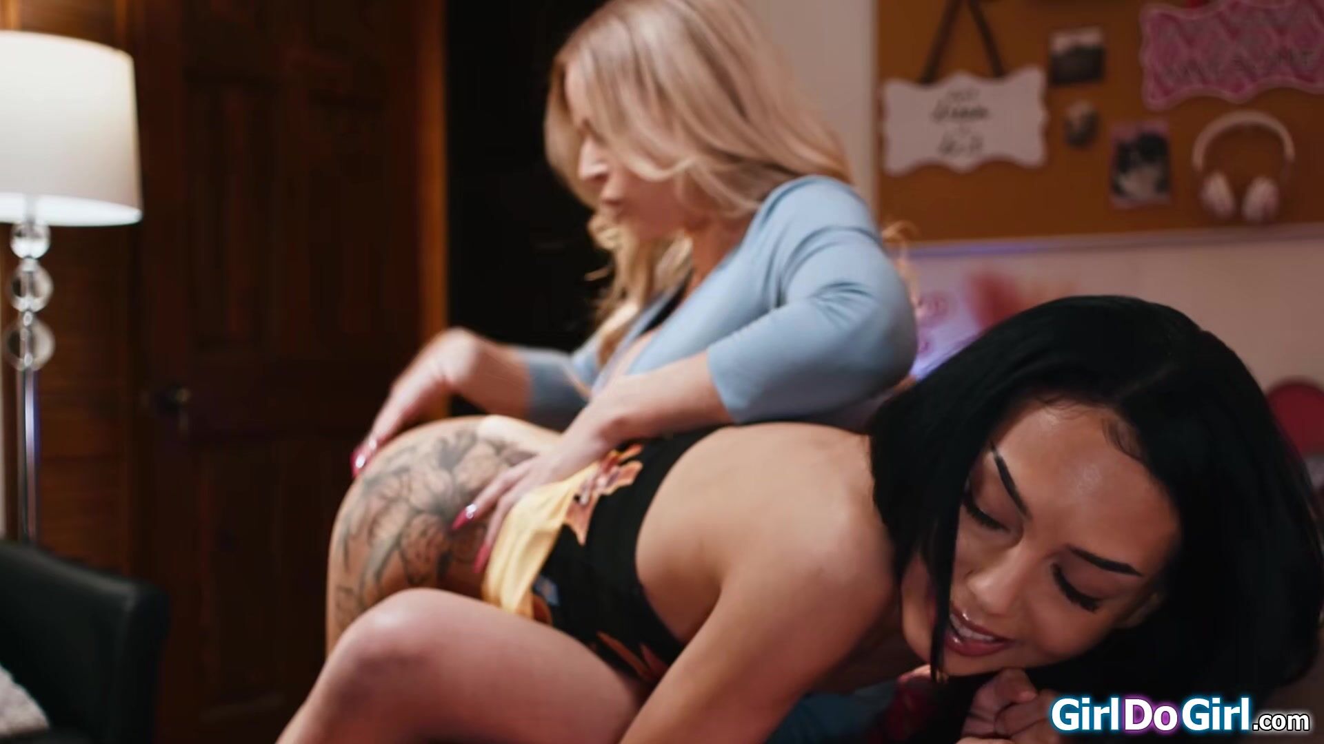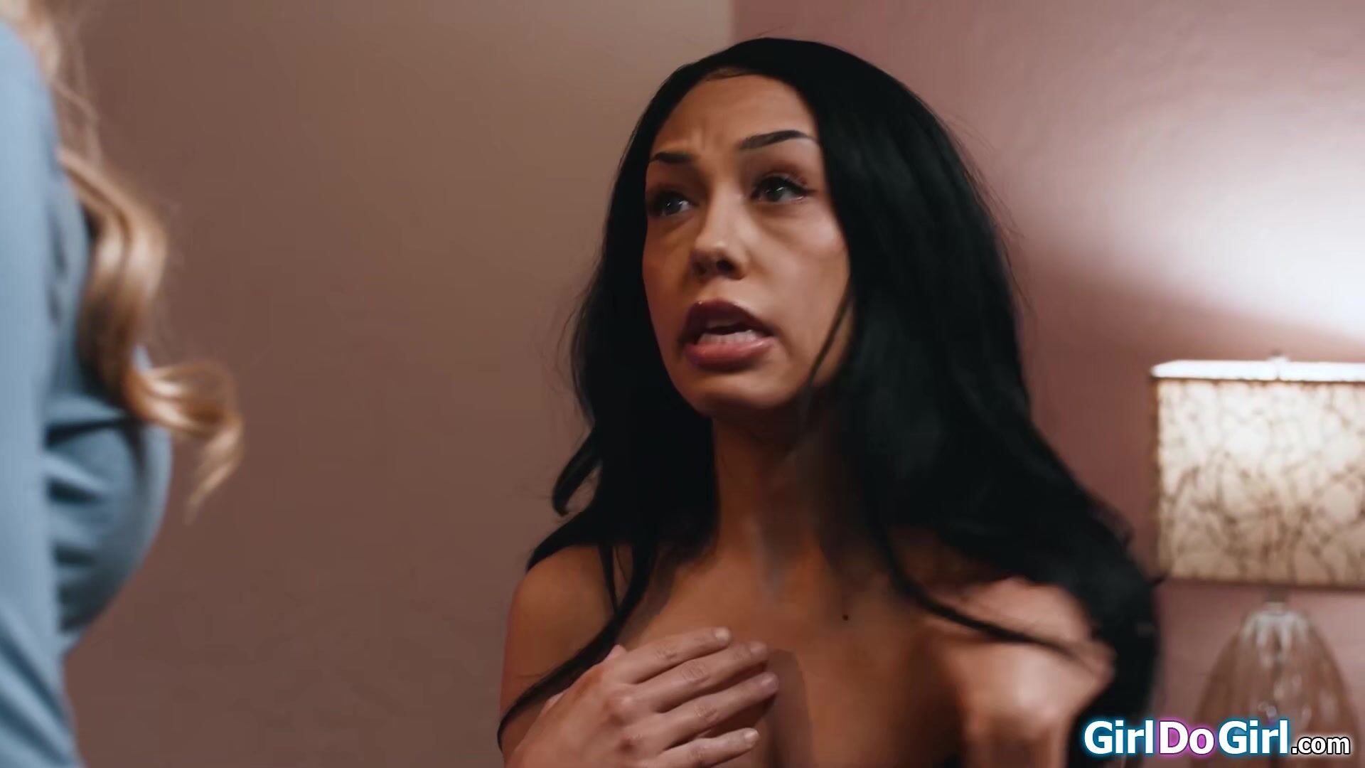 Busty stepmom Danielle Renae catches her stepdaughter Bianca Bangs sneaking out again and decides to spank her.The small tits teen enjoys it a bit to much and the milf goes even further by licking her.The cougar makes her suck tits and rim her