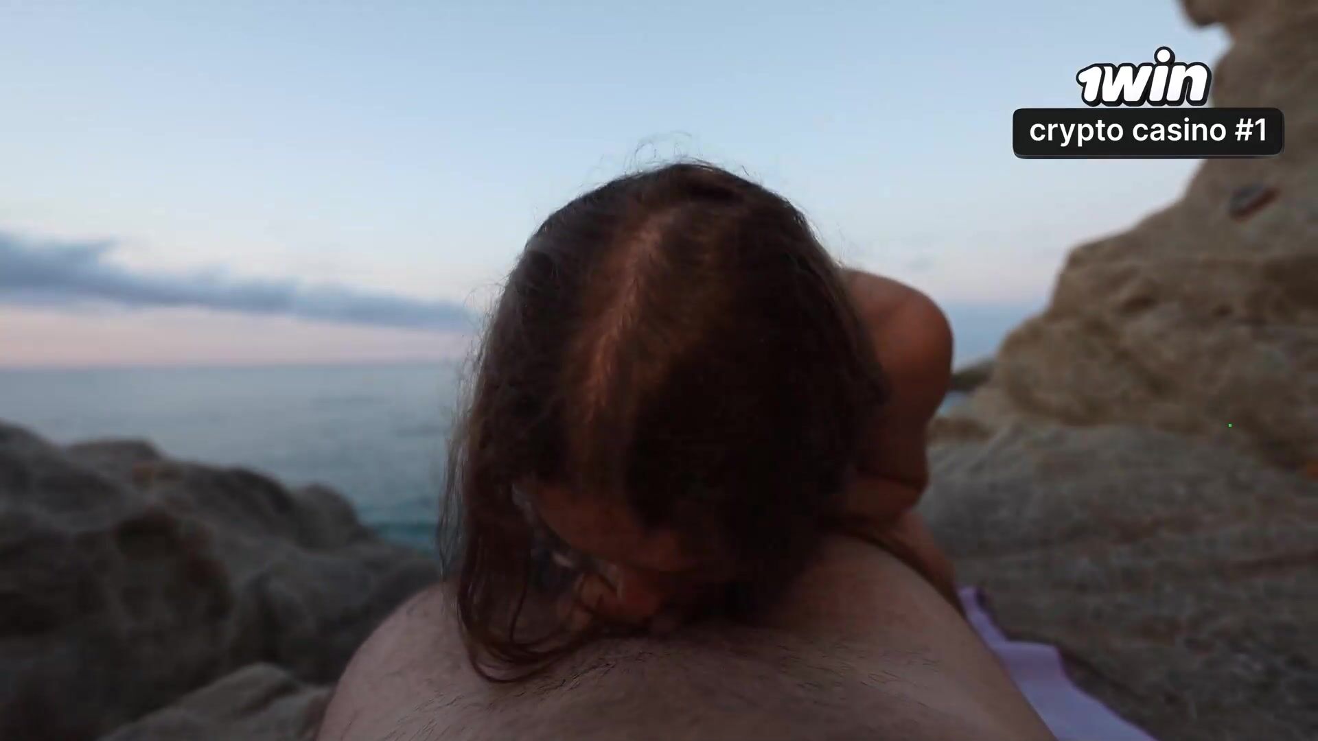 Sex on the rocks with stranger. Anal creampie. Public fuck fest.