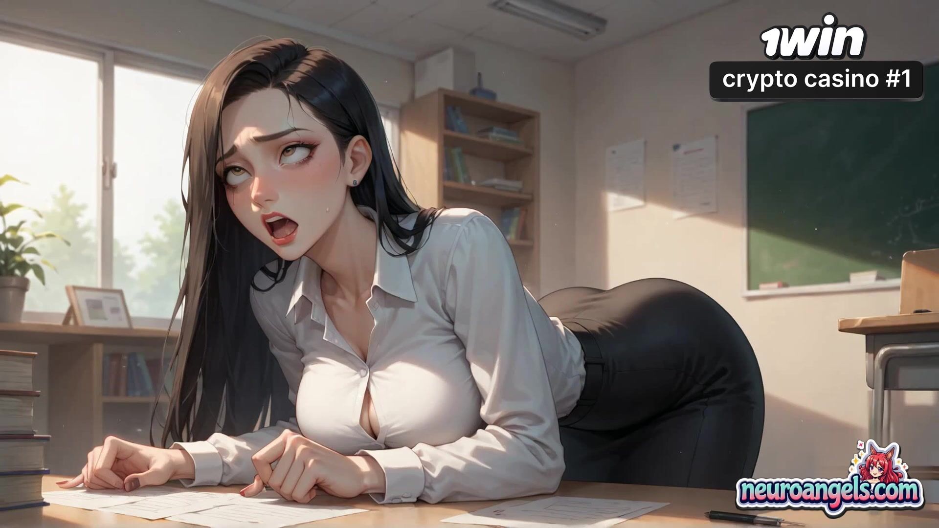 A stunningly detailed -style episode features a blue-haired nymph on her arms and knees in a sunlit bedroom.