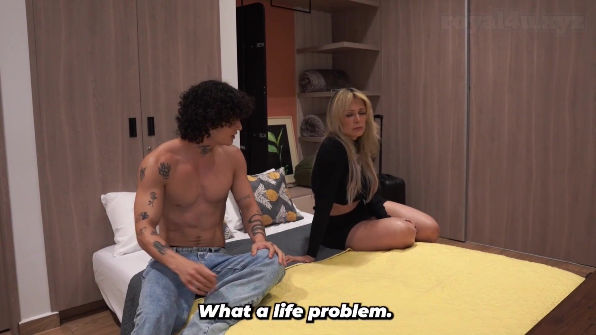 Busty Blonde Stepmom Shares Hotel Room With Stepson