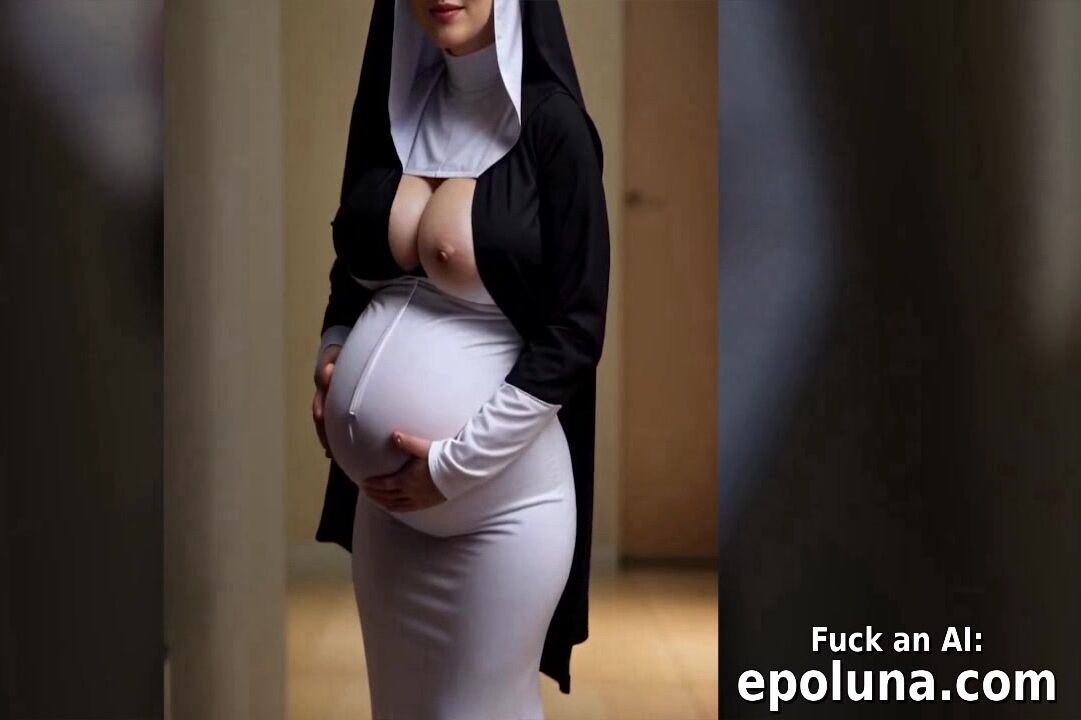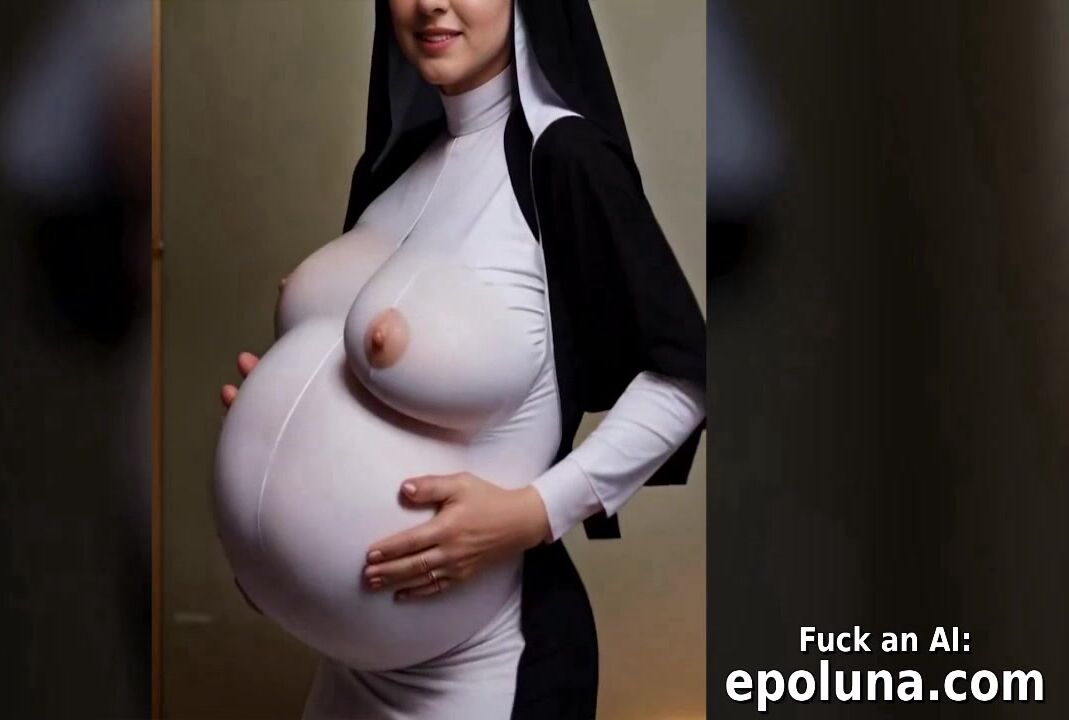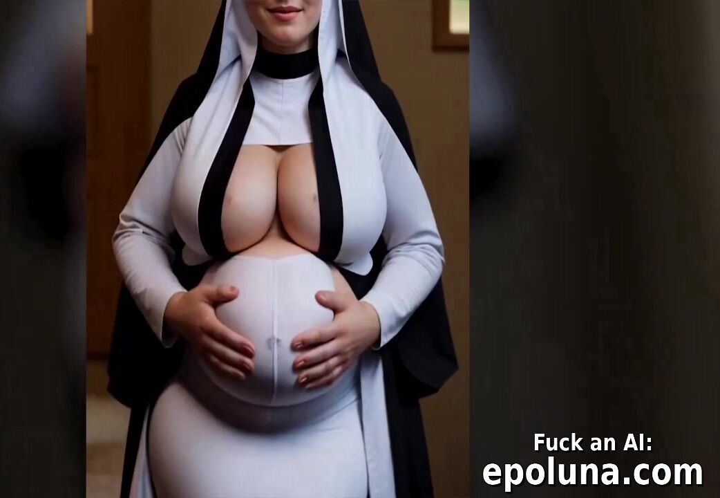 ai generated curvy buxom pregnant nun demonstrates her ripe melons and huge belly at
