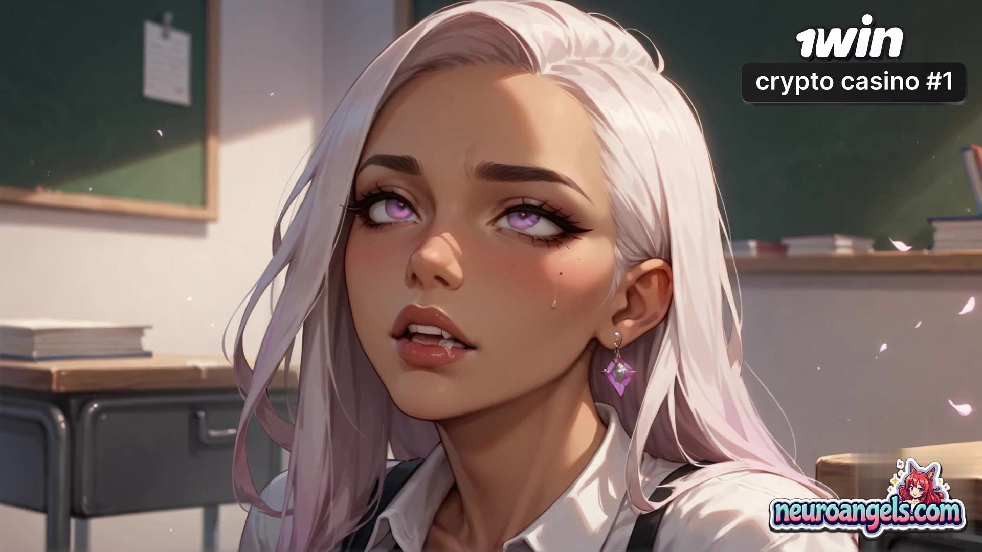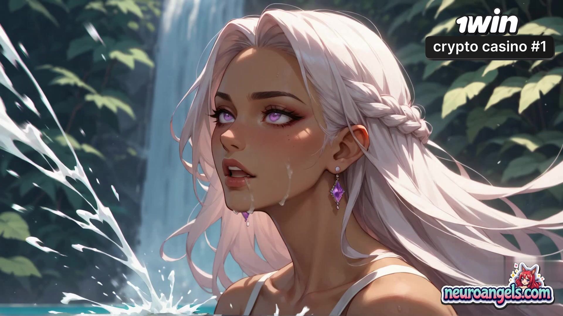 Her ecstatic expression and the dribbling cream-colored drops create an intense, multi-orgasmic experience.