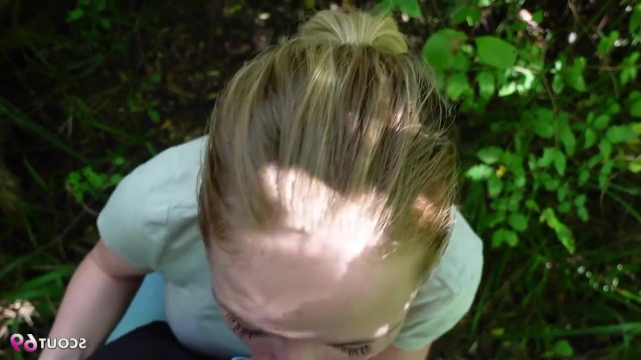 A fair-haired, green-eyed young woman of German descent has an explicit conversation from a risky public viewpoint regarding sexual relations with an unknown individual.
