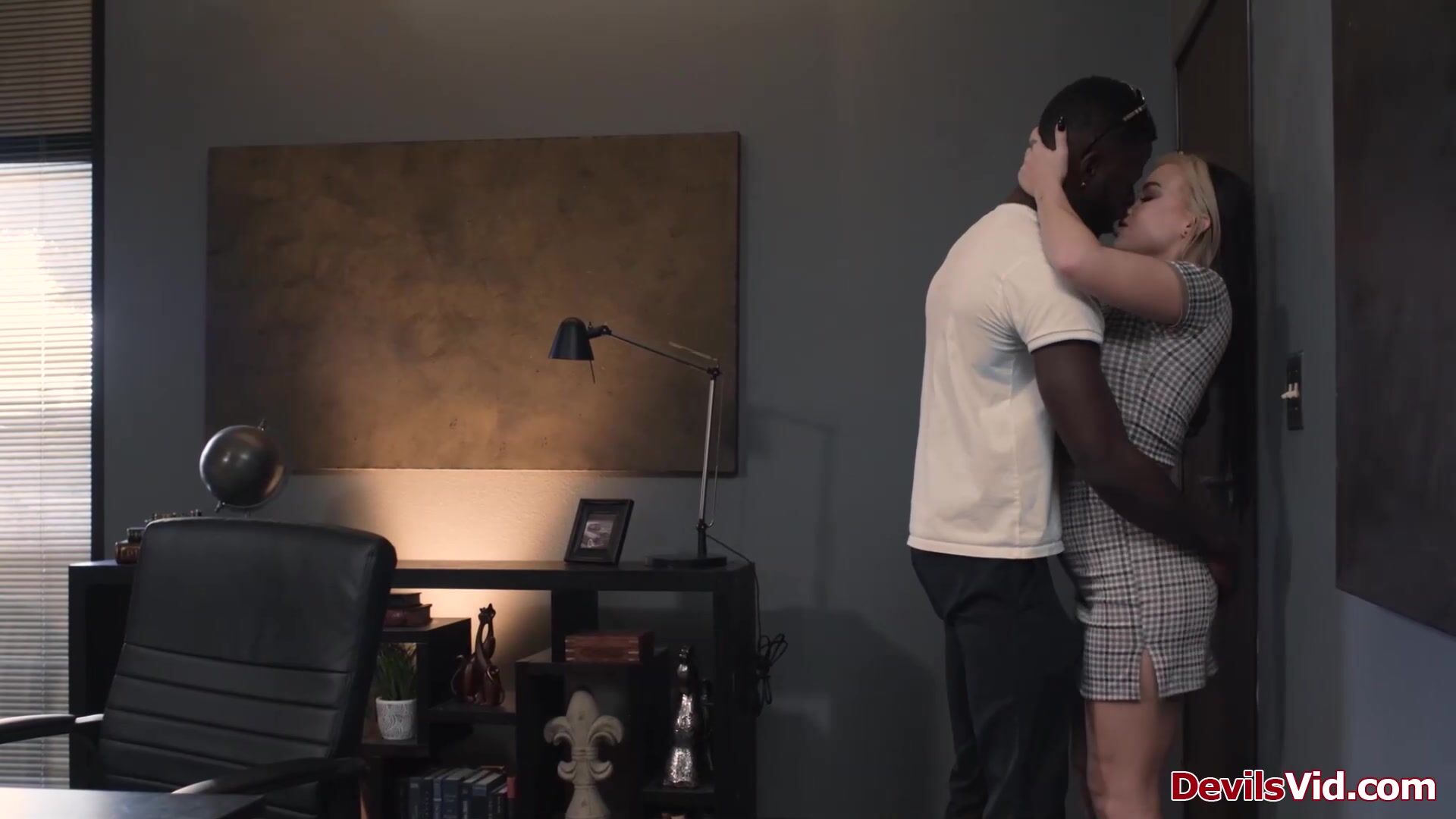 Big tits psychologist Cubbi Thompson is playing fire with her client.They are kissing in the room while his wife is outside.The busty babe is deepthroating his big black cock and wants it inside her shaved pussy.The guy eats her out before they fuck.