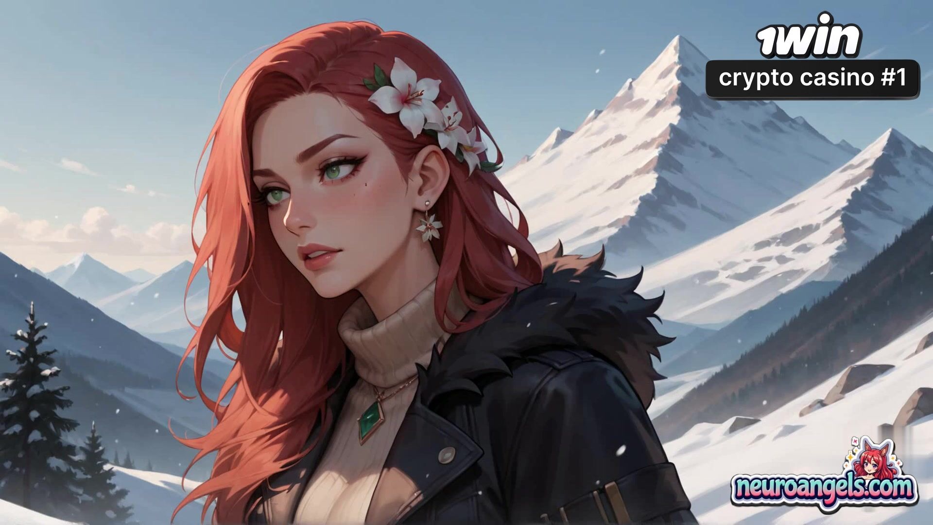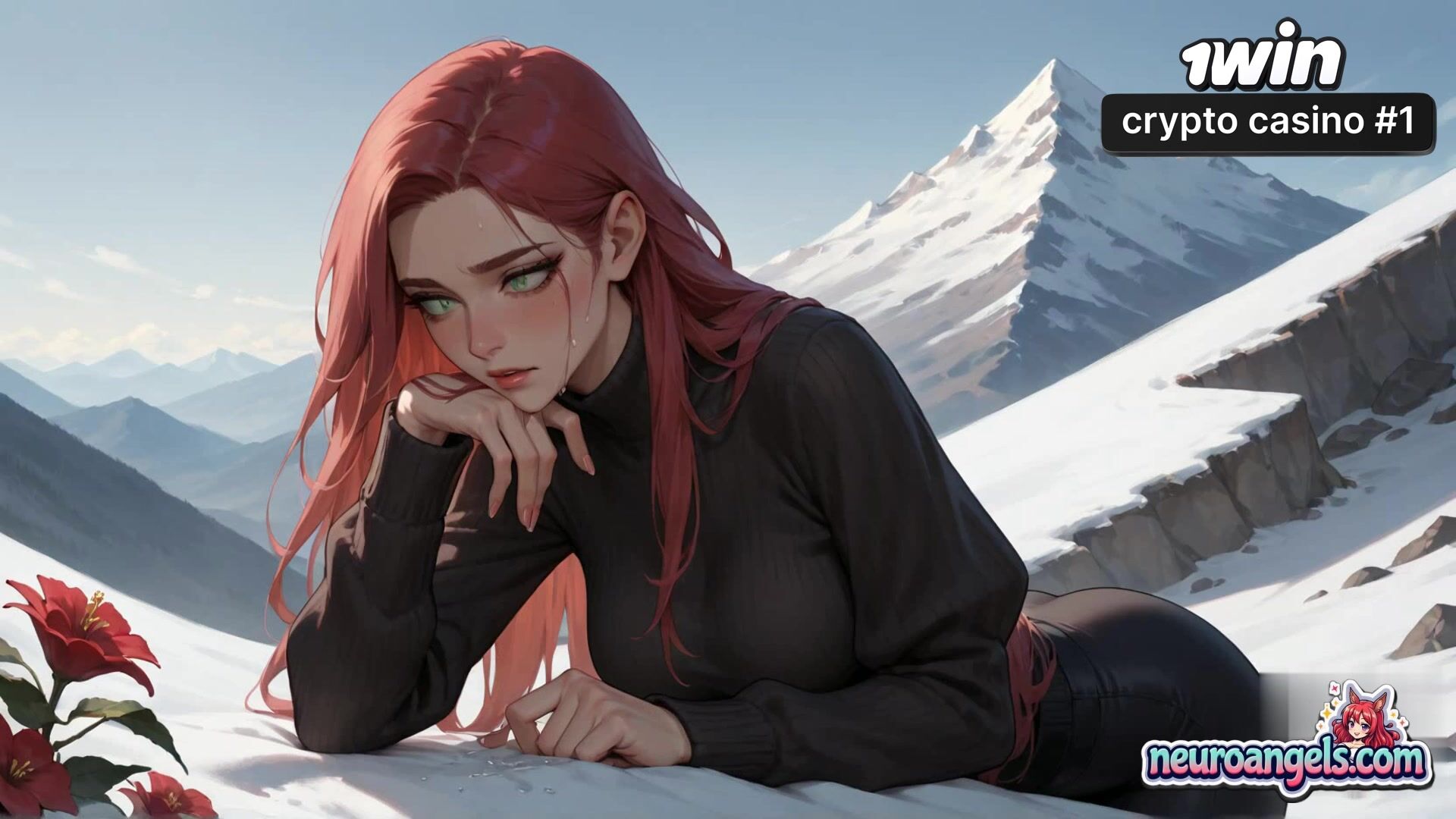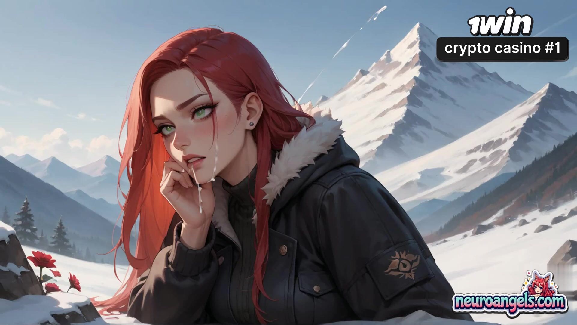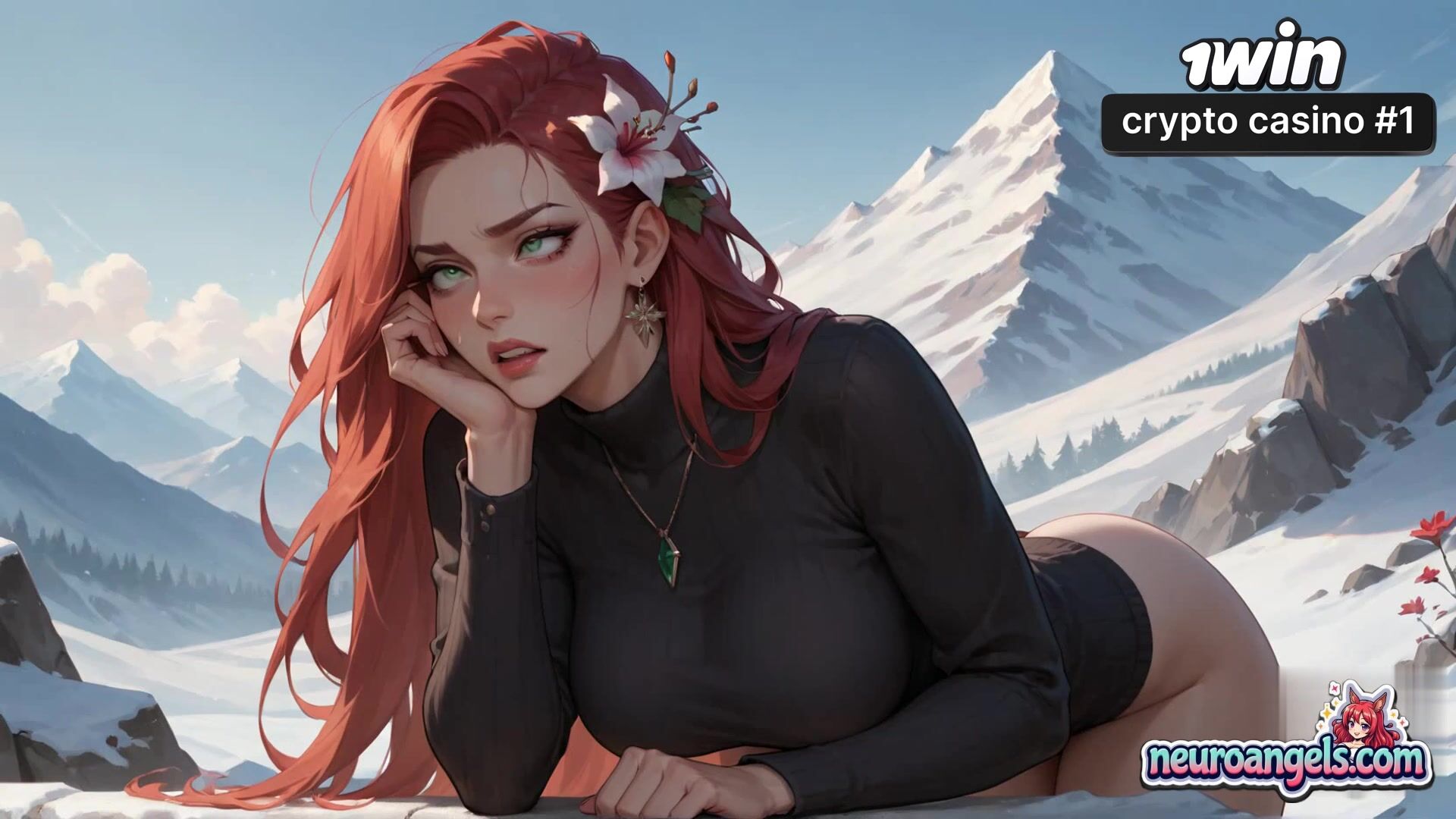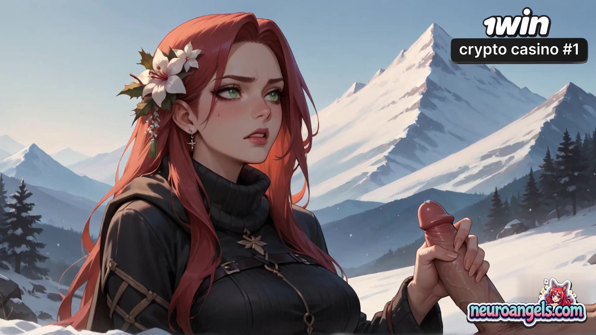 A redheaded enchantress with a white lily in her hair gets on all fours on a snowy mountaintop. Her big knockers bow as a beefy boy's hands guide her to a insatiable climax. Snow-capped peaks and azure skies surround their sultry outdoor tryst. Sweat gleams on their flesh as they come together in the invigorating alpine air - the most awesome gonzo porn you've ever seen!