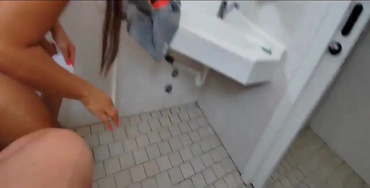 She leads me to the restroom at the beachfront establishment, intending to have receptive sex, and then she manually stimulates me until I ejaculate.
