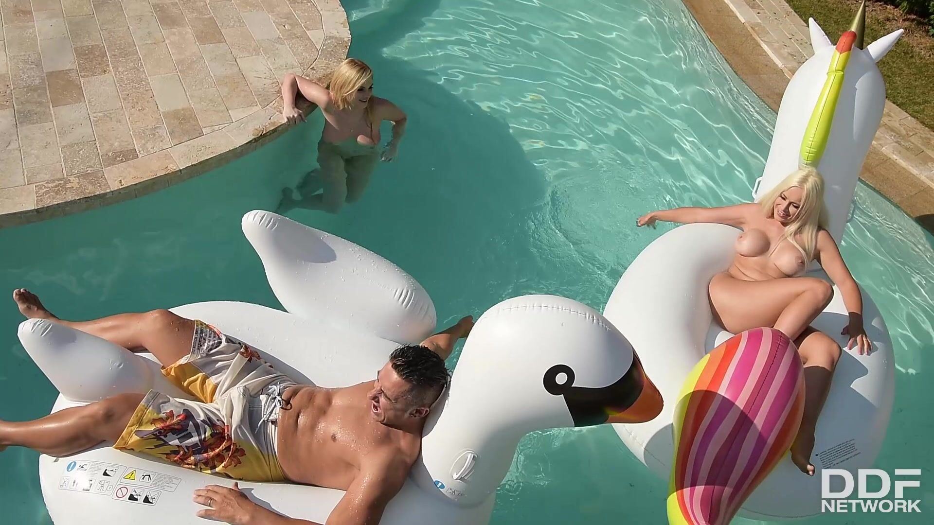 Are you ready for some deep anal cramming by the pool with two voluptuous bombshells named Katy Jayne and Vittoria Dolce? Today’s is packed with intense threesome fucking in the sunshine! Join Mugur and his two babes for a sizzling hot premium porn adventure and watch him slide his massive boner down their deep throats while fingering their wet vags! British beauty Katy Jayne licks Vittoria Dolce in 69 while that blue-eyed milf from the Ukraine sucks the Romanian stud’s thick prick. The two curvy babes work his dong and let him fuck their warm, wet, tight holes doggy style before sucking his cock and lube it up for some deep anal sex! After fucking Katy Jayne from behind while she slides her wet tongue into her lesbian playmate’s pussy, Vittoria Dolce rides his dick with her anus like a horny cowgirl! The XXX Full HD threesome ends with a massive load of cum in their mouths. Both lecherous babes shake their massive knockers and get ready for a cum swap, when hardcore scene comes to an end.