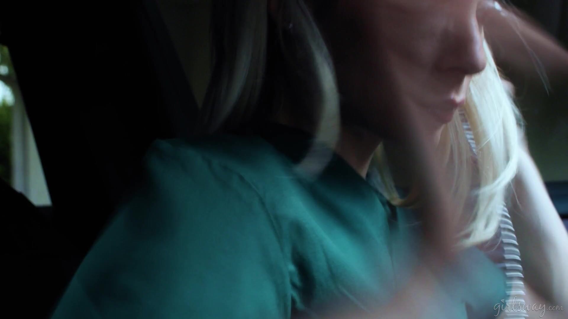 Kenzie then offers to 'show' her what she means instead. She puts her hands on Ashley's thigh and massages her leg. She gets closer and pushes Ashley's hair back, feeling her shoulders and neck. Eventually, they get so close that they kiss deeply but then suddenly break apart. Ashley apologizes profusely, but Kenzie suggests that if Ashley REALLY wants to, they can go all the way together. What better way to learn about affection and sensuality than with someone you trust?