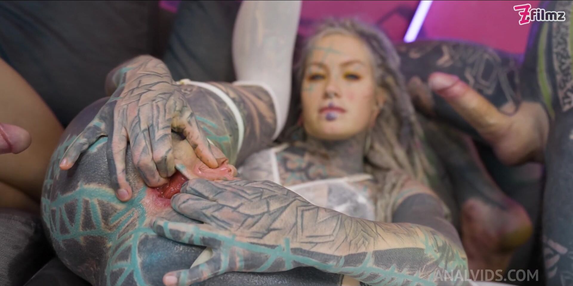 Extreme TATTOO DAP action - Two big dicks in one ASS - anal gapes, squirt, ATM, prolapse, facial cumshot, rough sex