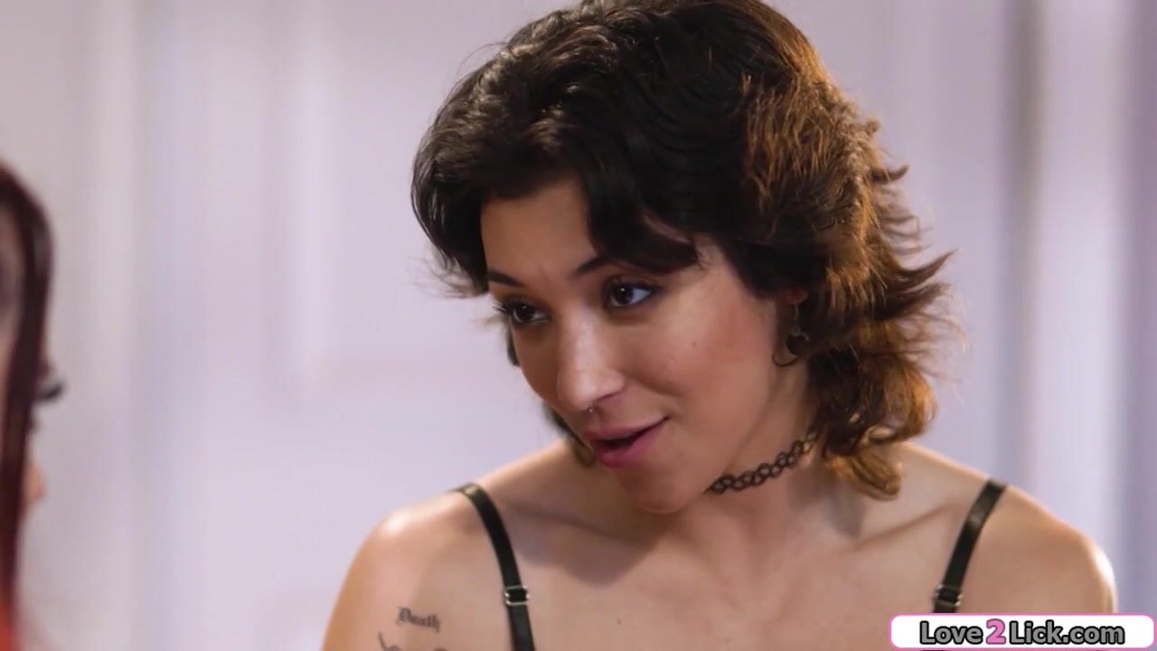 Tattooed brunette asks gf to stop celebrating so many anniversaries and they kiss.She sucks her big tits and the busty babe sucks her small tits.She licks and fingers the redheads shaved pussy and then facesits her as her gf masturbates her own cunt