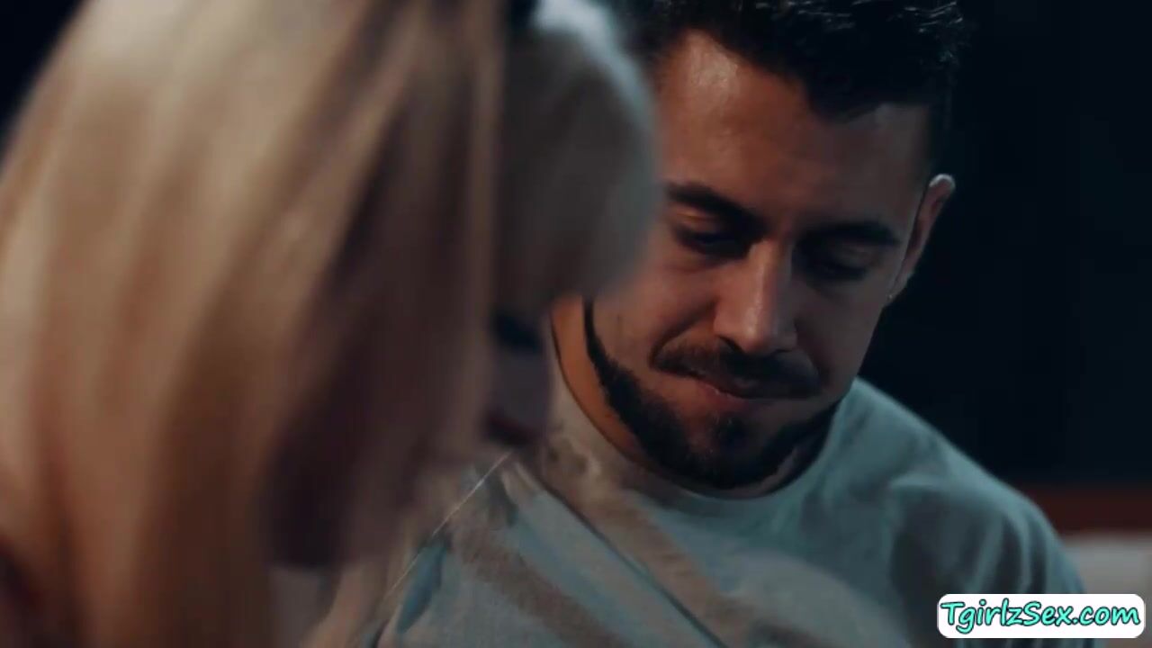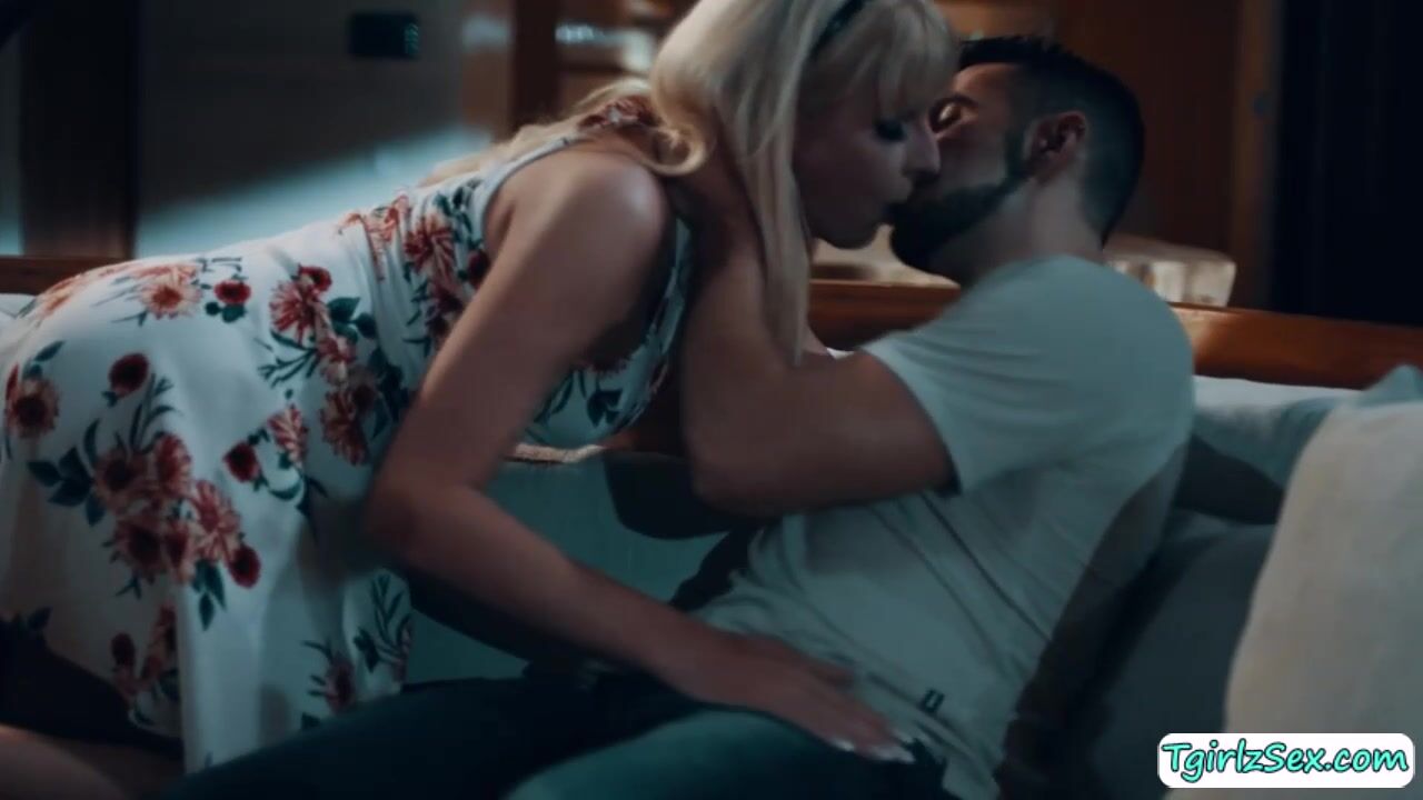Musclular straight guy Dante Colle flirts with busty blonde shemale Jamie French in the couch kisisng and tti sucking her big boobs. Later on, the hunk stud stretch her big ass to hardcore anal bareback doggystyle after he rimjobs it moaing in orgasm.