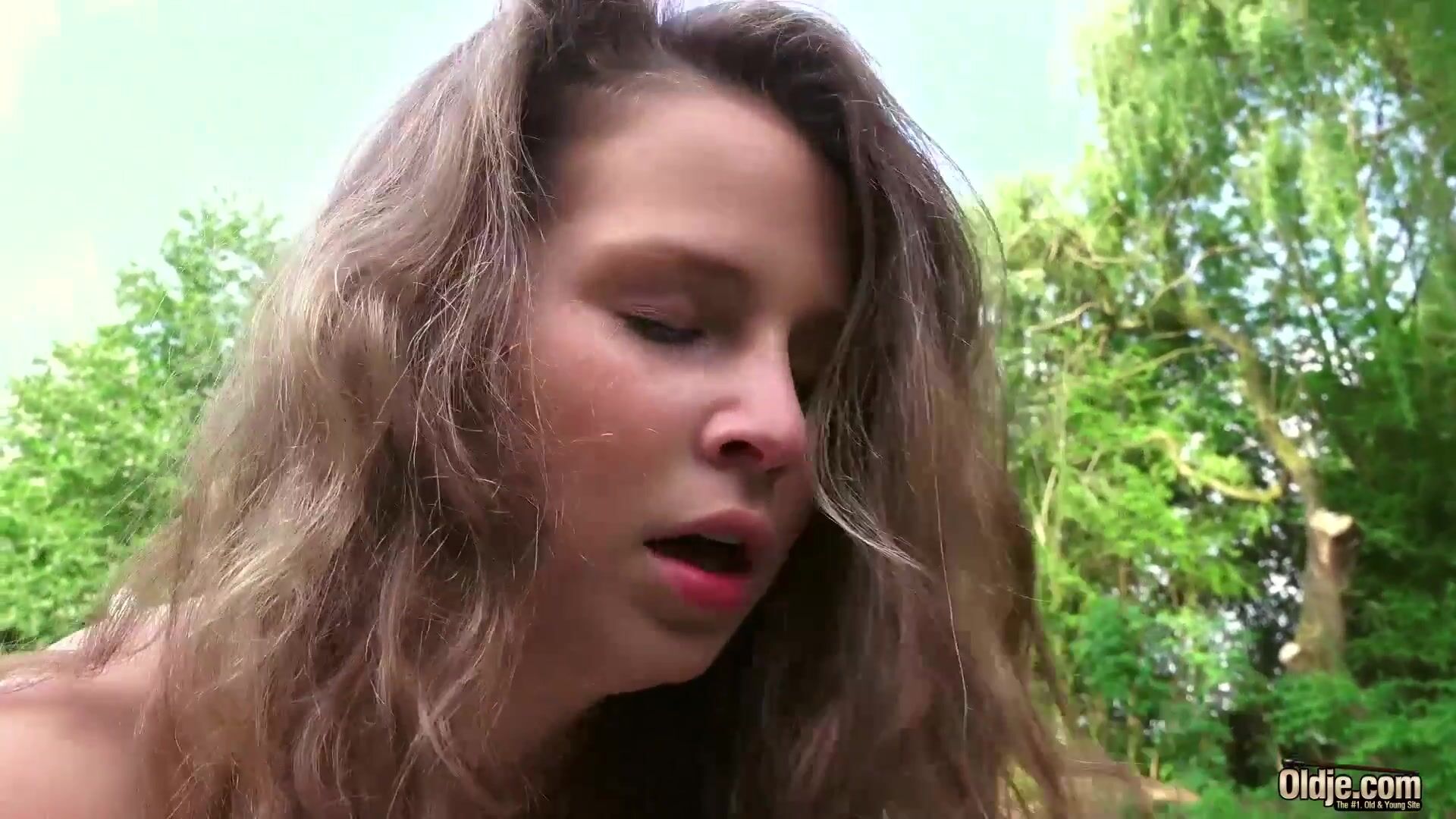 Gorgeous brunette riding a fat old stranger
