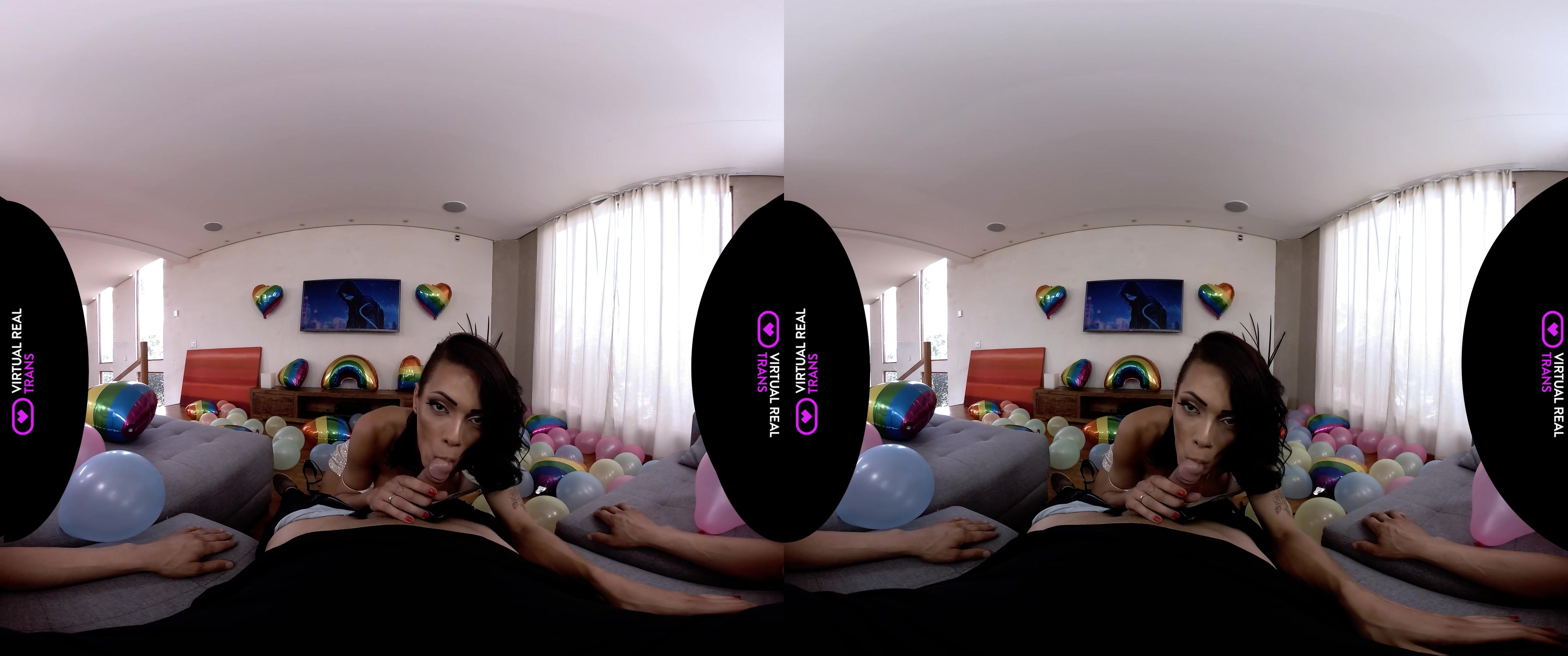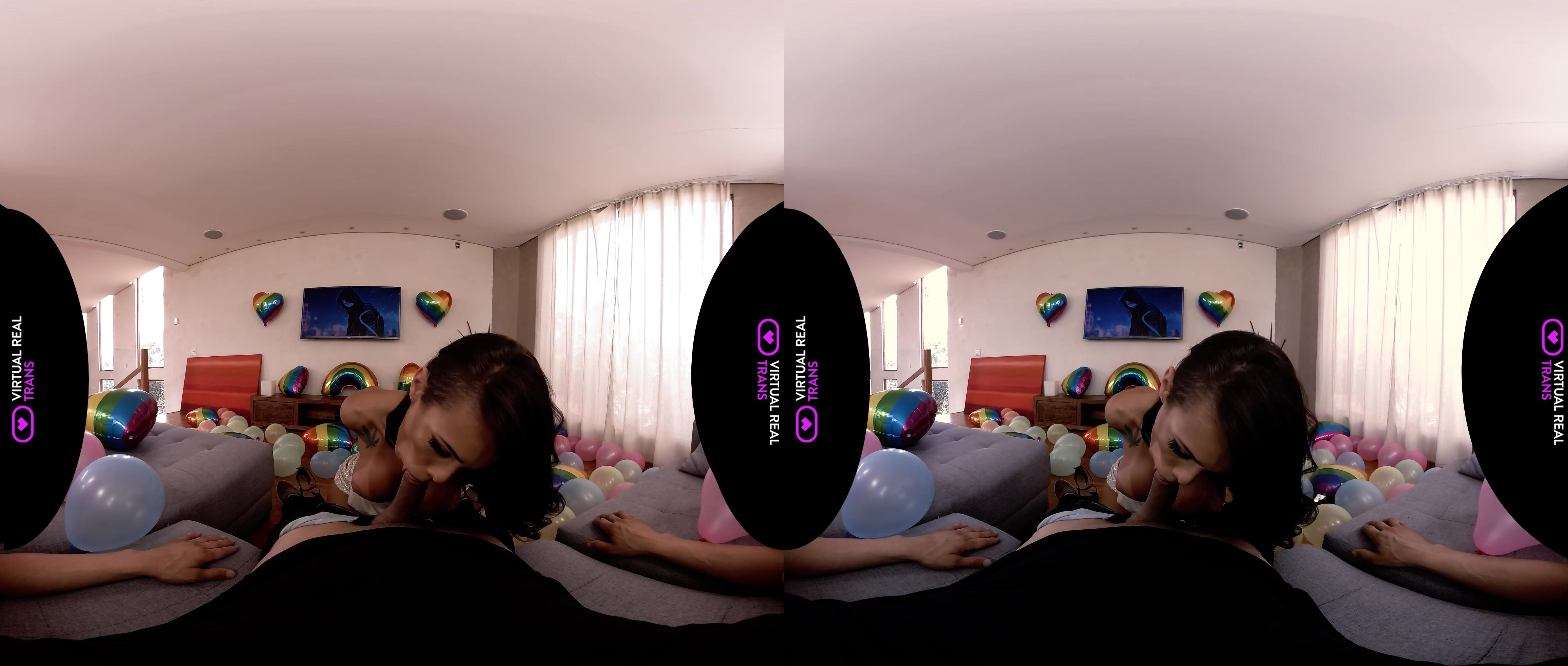 Gaby Maiia wants to celebrate Pride month with you. The captivating brunette prepares a lot of pride balloons to decorate the room. After finishing the living room decorations, Gaby suddenly craves for you. She teasingly flashes her big tits to you before giving you a titillating blowjob and titsjob. The naughty hottie then rides your shaft in cowgirl and reverse cowgirl. She returns the pleasure by making love with you in missionary while jerking off your rod. You can feel her natural ass clenching hard with every thrust you make. She lets you please her doggystyle before getting on top of you again. Gaby jerks off her rod until she cums on you. After that, she blows your shaft until you also cum for her.