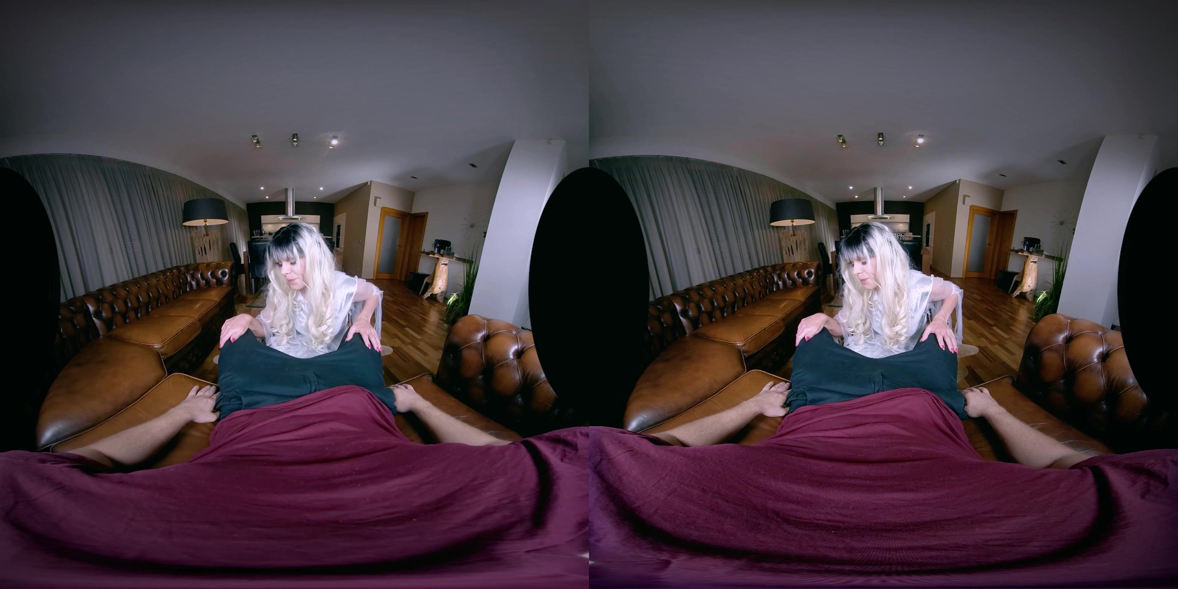 Joanna Jet is The Ghost. Imagine you are playing with yourself whilst sitting on the sofa, looking at some steamy-hot action. Then as you look up from your phone, there she is – a ghost smack in the middle of your living room. She starts to approach you, her big member hanging damn low. As the ghost stares you right in the eye, her penis grows erect and ready for action. Next thing you know, the ghost starts rubbing the two of your penises together and gets down on her knees to give you a blowjob that is terrifyingly satisfying. As you warm up to her presence, you proceed to drive your penis deep inside of her as she howls with pleasure. What follows is some incredible penetration action all over the place. It is so good, it’s scary.