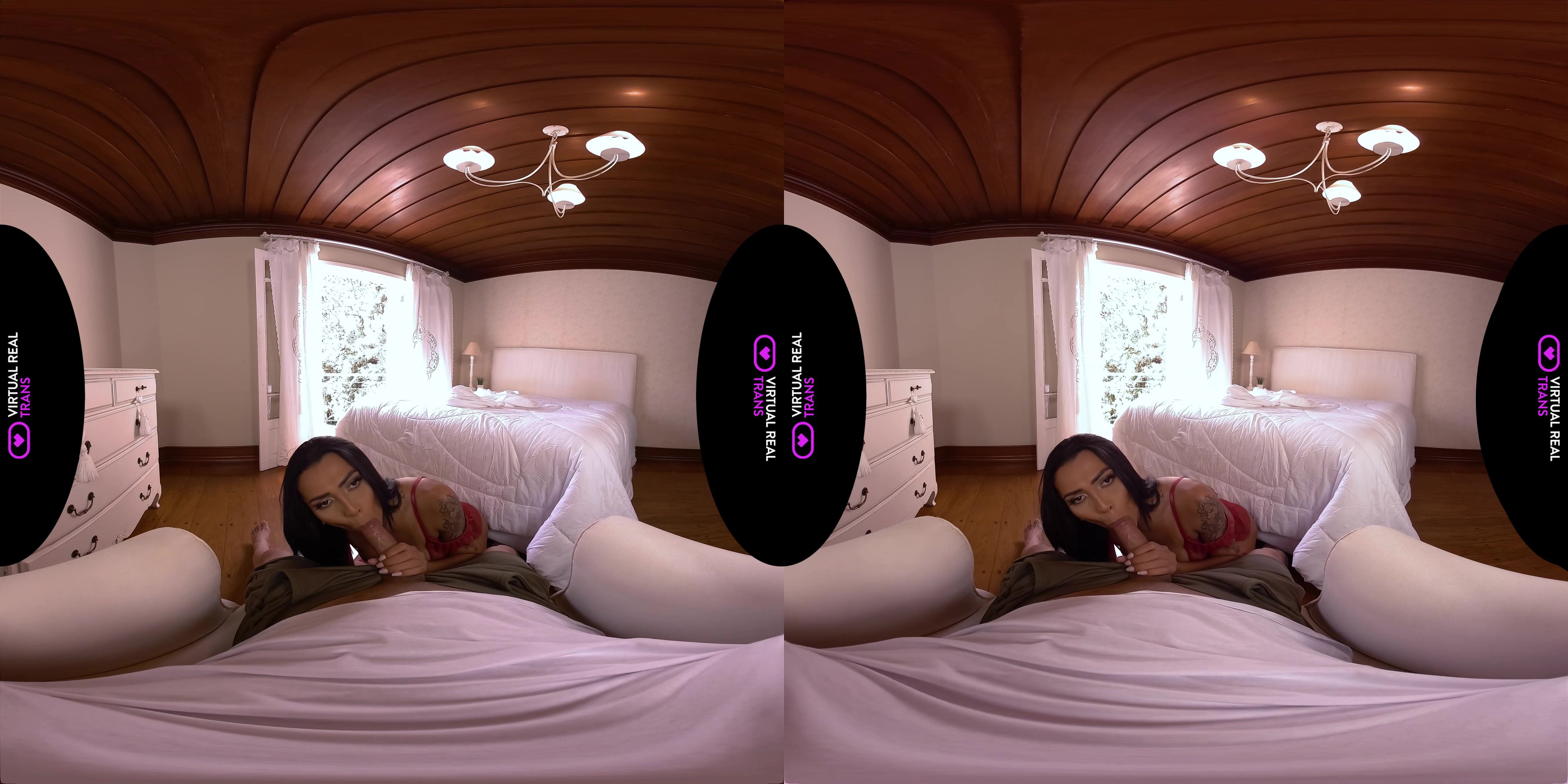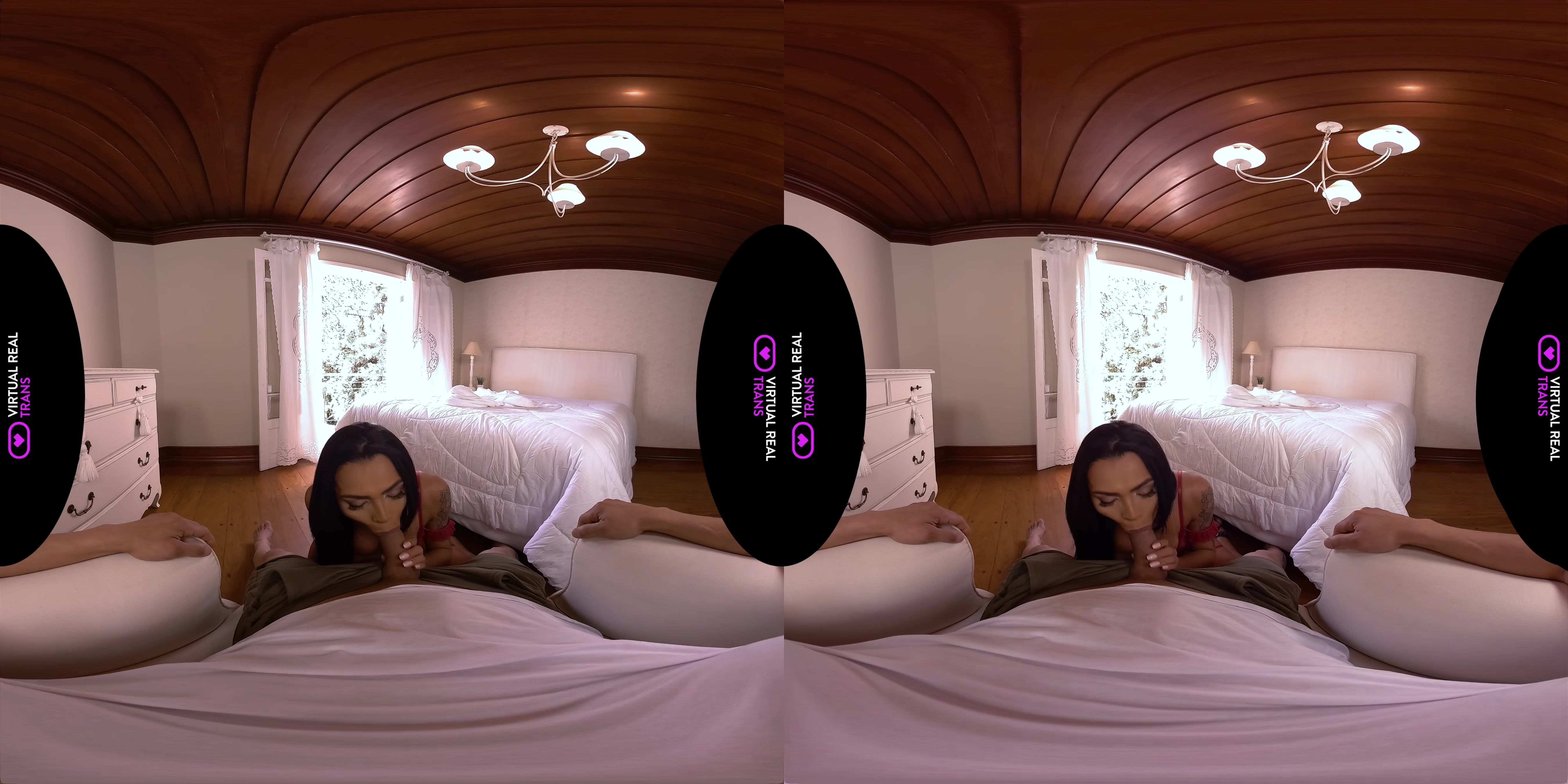Letting you pick the lingerie she will be wearing is just the beginning of Louyse Hills‘ surprise for you tonight. The captivating brunette with a big ass would like you to just relax and let her please you with all her might. Louyse teases you with her dirty talk before letting you enjoy the sight of her body in sexy red lingerie. Your beautiful VR girlfriend with natural ass then gets down on her knees to give you a spine-tingling blowjob. After pleasing you with her lips and tongue, Louyse bends over on the bed and surrenders her ass to you. She can’t help but moan in delight as you make love with her in doggy and missionary. Louyse then rides you hard in cowgirl and reverse cowgirl before giving you a bareback pounding in missionary. The two of you continue with your tantalizing bedroom romance until you both cum.